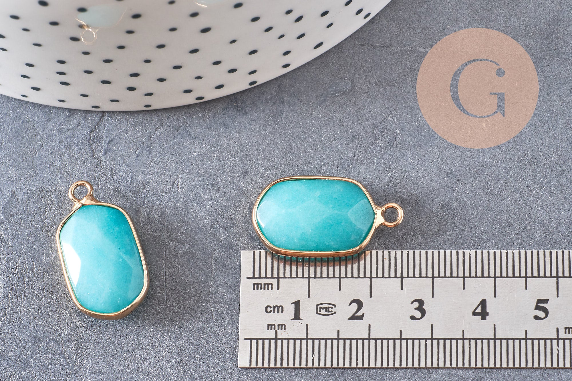 This hexagon pendant in natural turquoise-tinted jade adds a refined and trendy mineral touch to all your jewelry creations. Its geometric shape combined with the stone's softness makes it an ideal component for bohemian, mystical, or minimalist jewelry. Mounted on a nickel-free, gold-plated brass setting, it pairs easily with a variety of gold chains and findings.
