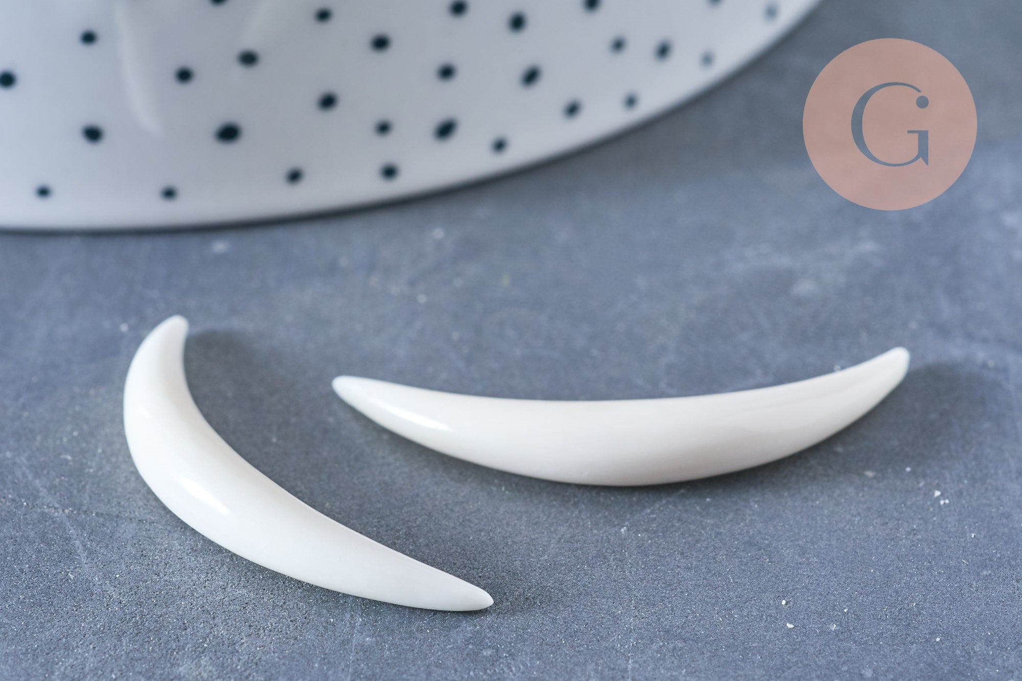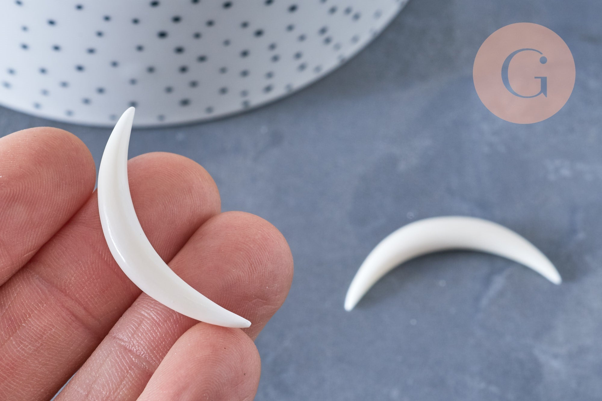 Let yourself be enchanted by the charm of this white horn crescent pendant ! Its neutral color and sleek design will inspire you to create your DIY costume jewelry .