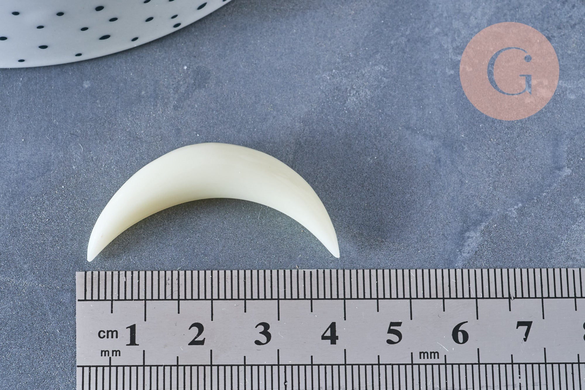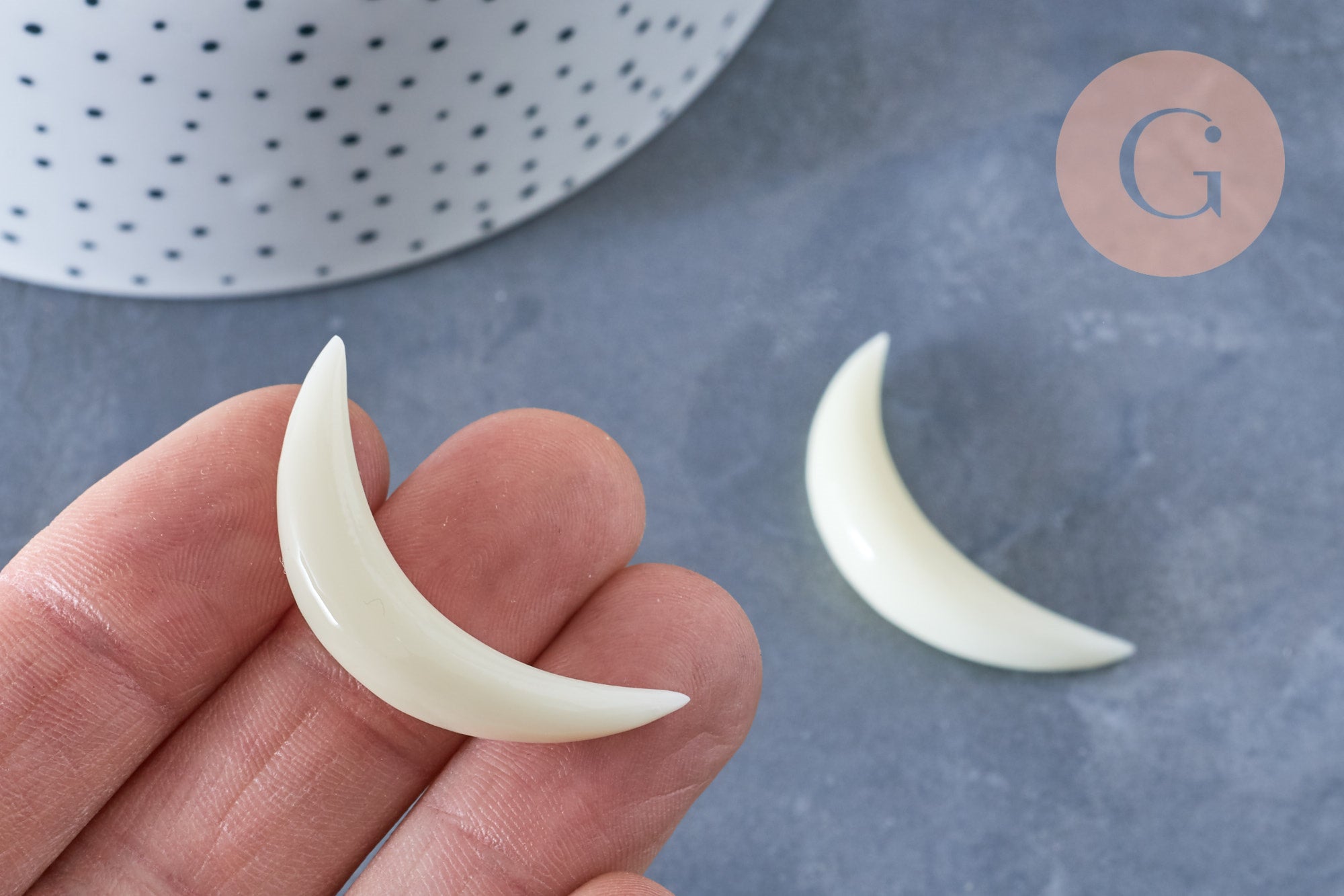 Let yourself be enchanted by the charm of this white horn crescent pendant ! Its neutral color and sleek design will inspire you to create your DIY costume jewelry .