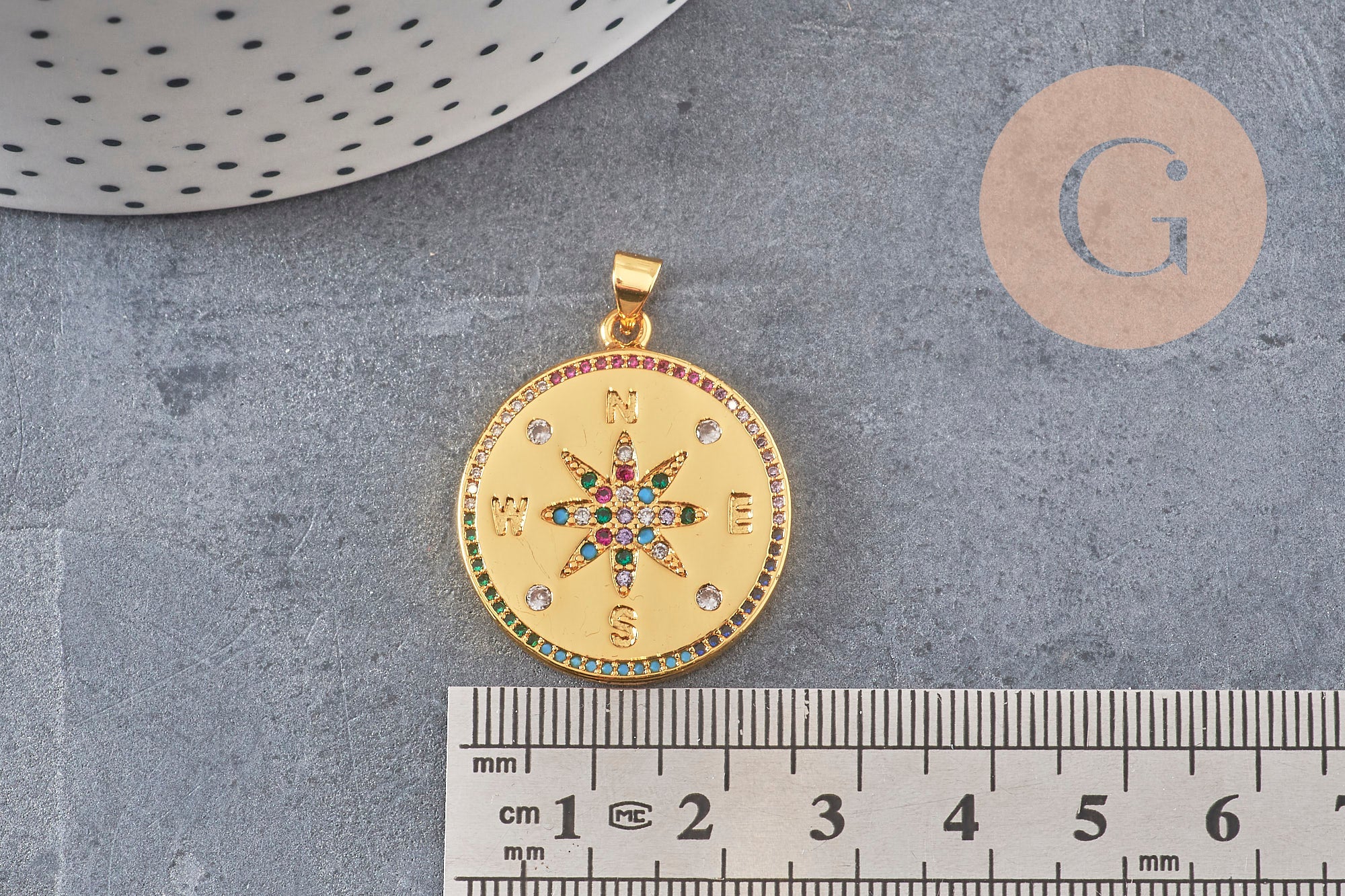 Elevate your creations with this round 18K gold-plated brass medallion , delicately decorated with sparkling zircons and a multicolored star at its center. This pendant symbolizes the compass , a guide and good luck charm, perfect for jewelry that is both elegant and spiritual .