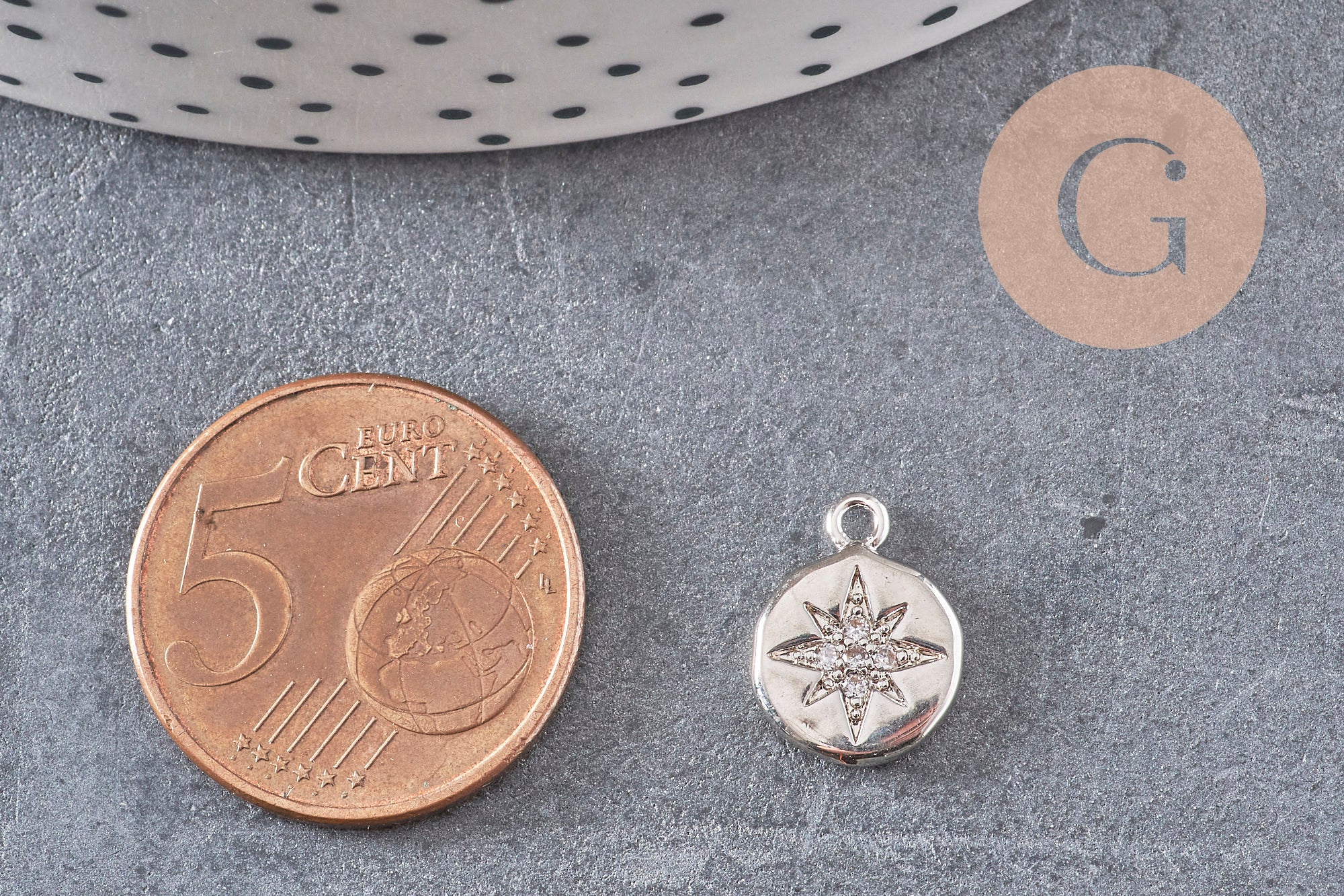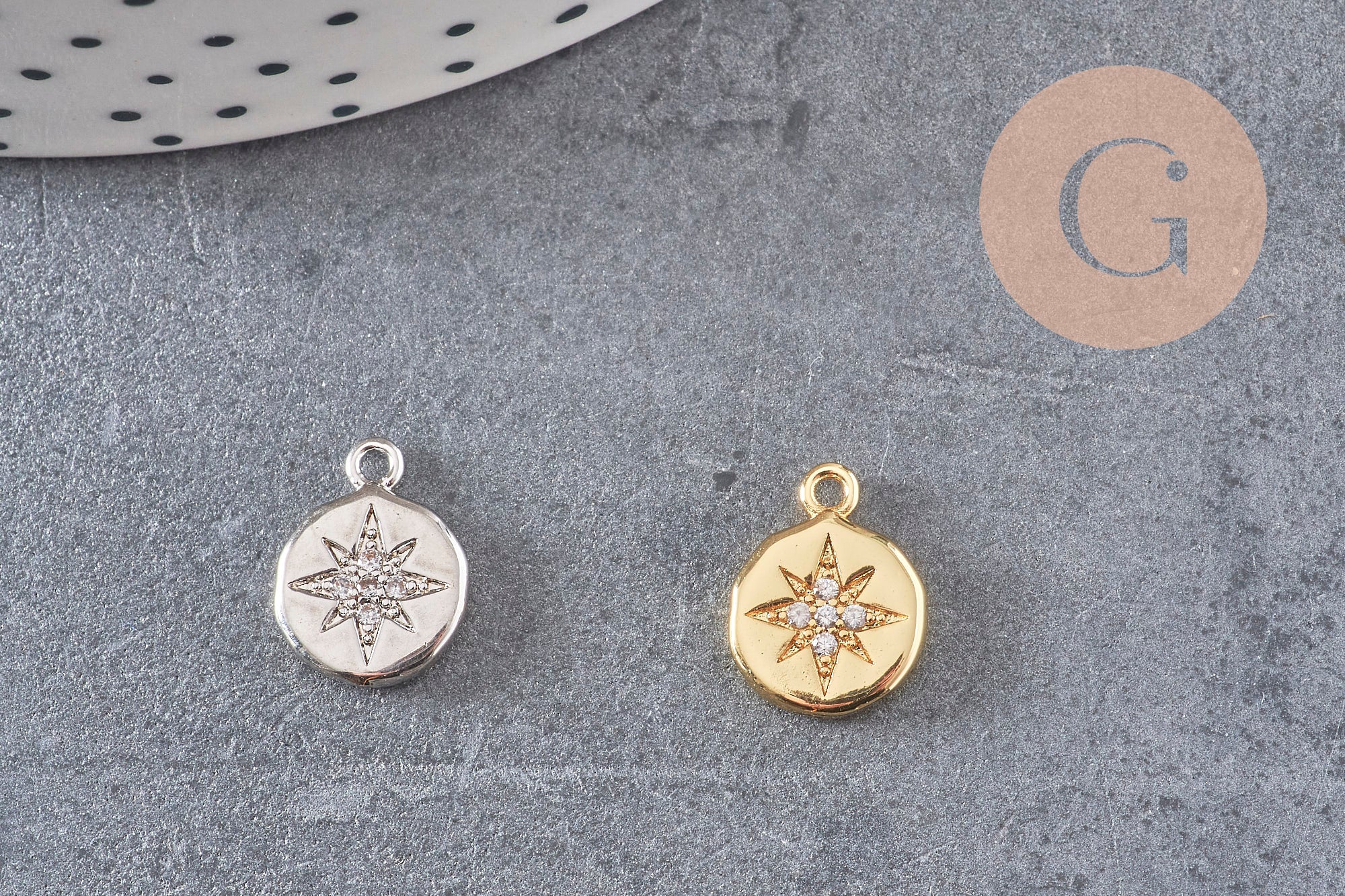 A pretty round medal in gold-plated brass decorated with white zircons representing a star