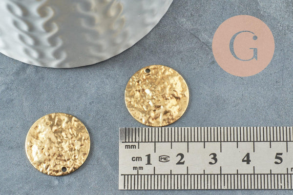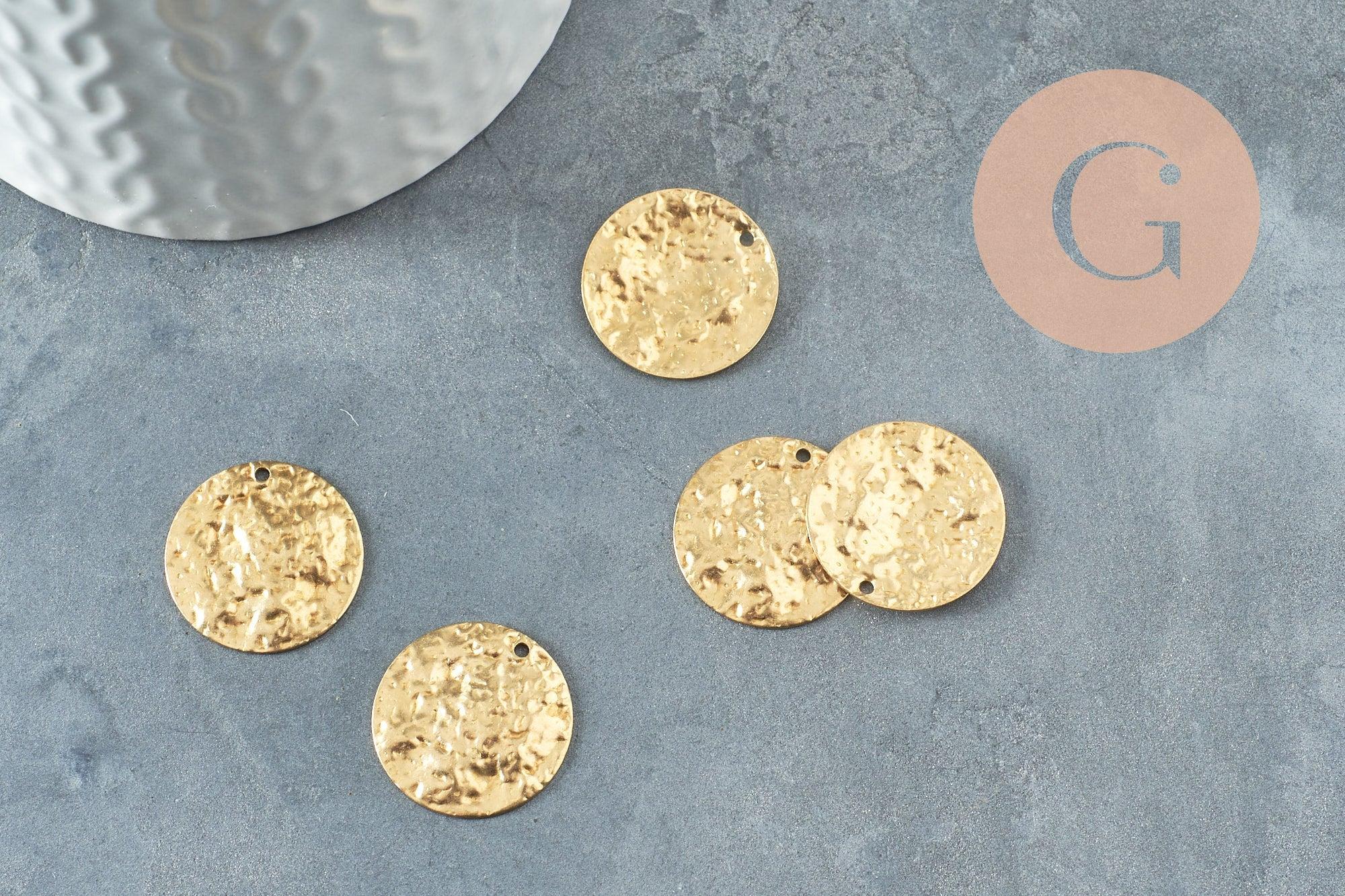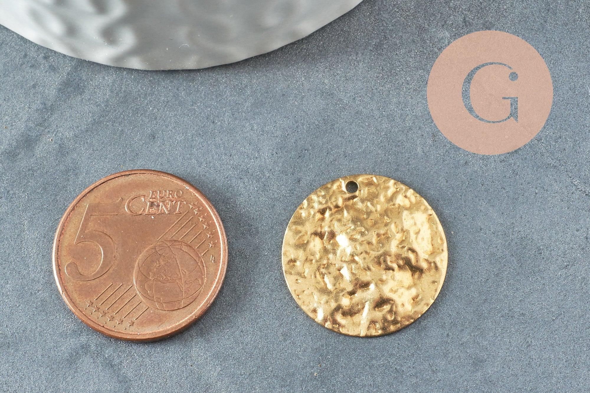 Pendentif médaille ronde martelée laiton brut 20mm, x5 (G0517)