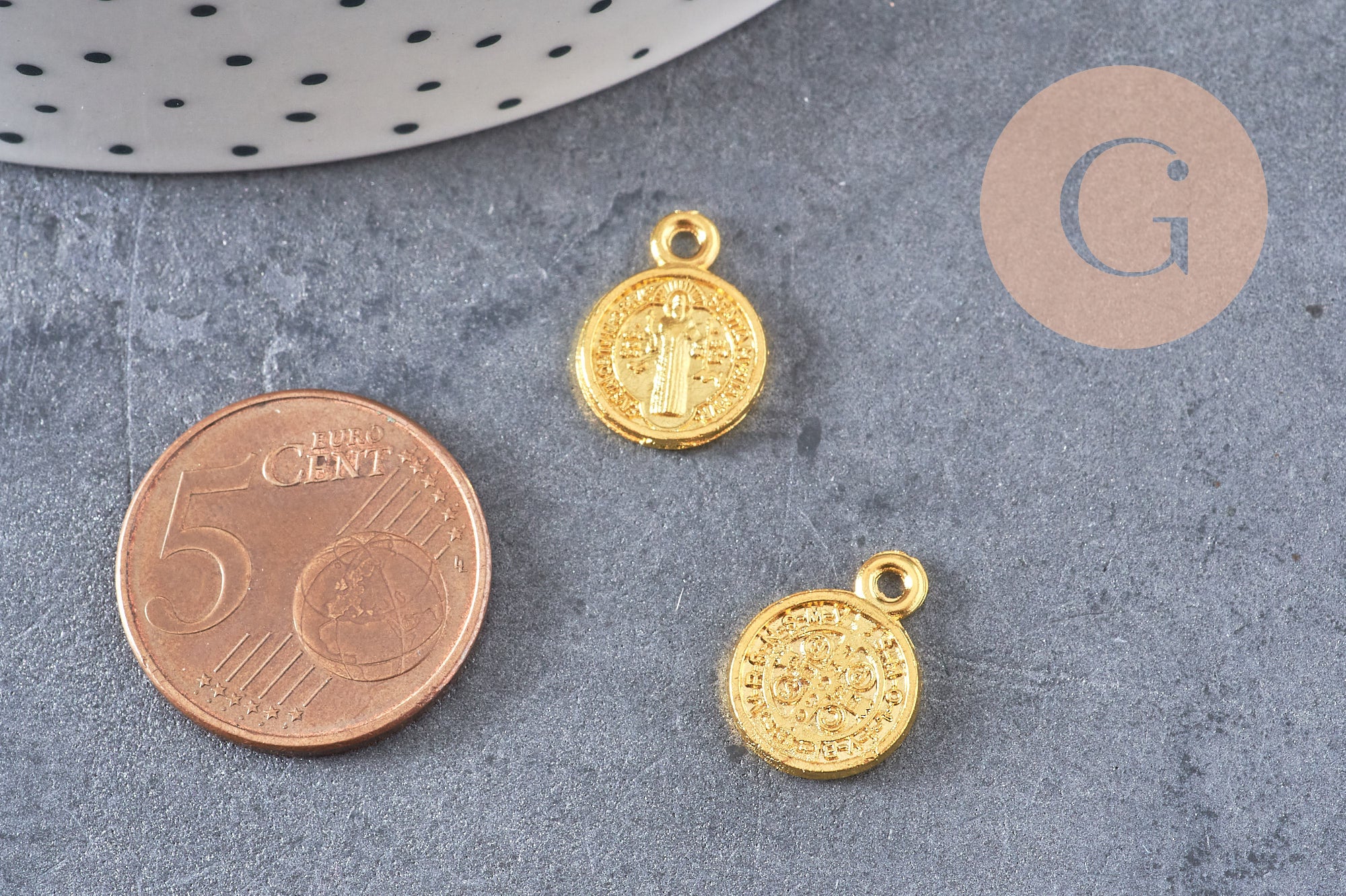 Saint Benedict round medal pendant in gold-plated zamac 14mm, nickel-free religious medallion, x10-G1623