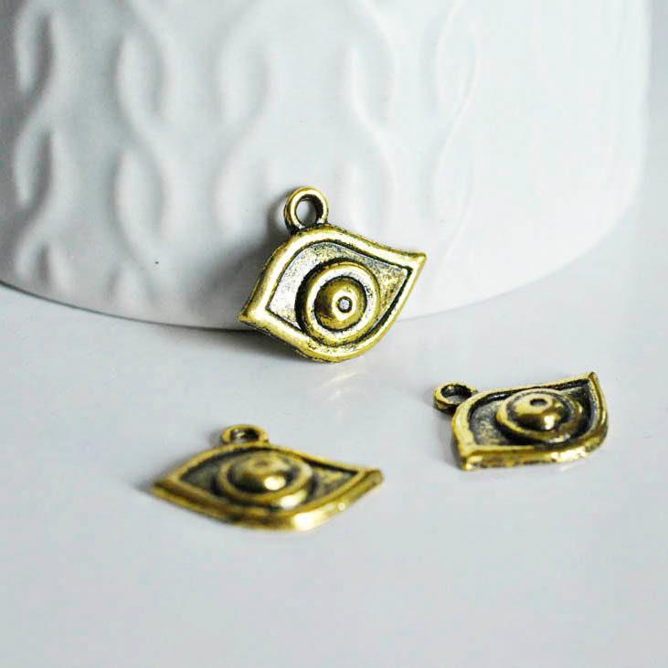 Old gold eye pendant, creative supplies, golden pendant, lucky charm, evil eye, golden Tibetan silver, jewelry creation, set of 10, 4.5cm A patinated golden eye pendant in Tibetan silver Dimensions: Length: 20mm Width: 10mm Hole: 2mm. sold in packs of...