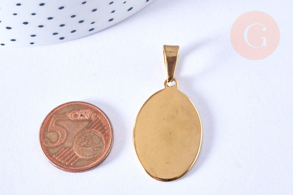 Pendentif ovale acier doré inoxydable 304 à graver 31mm, x1 (G6880)