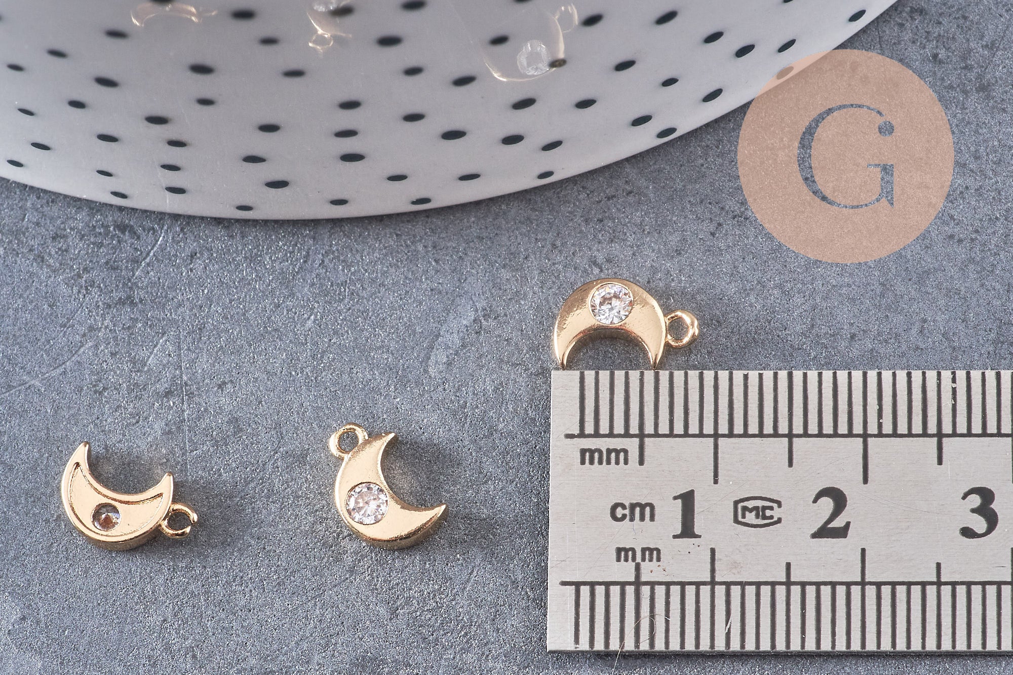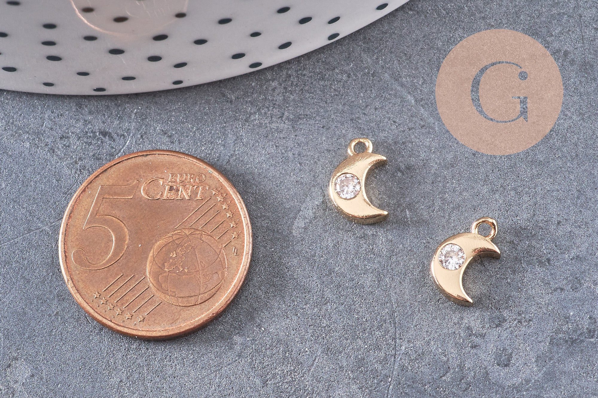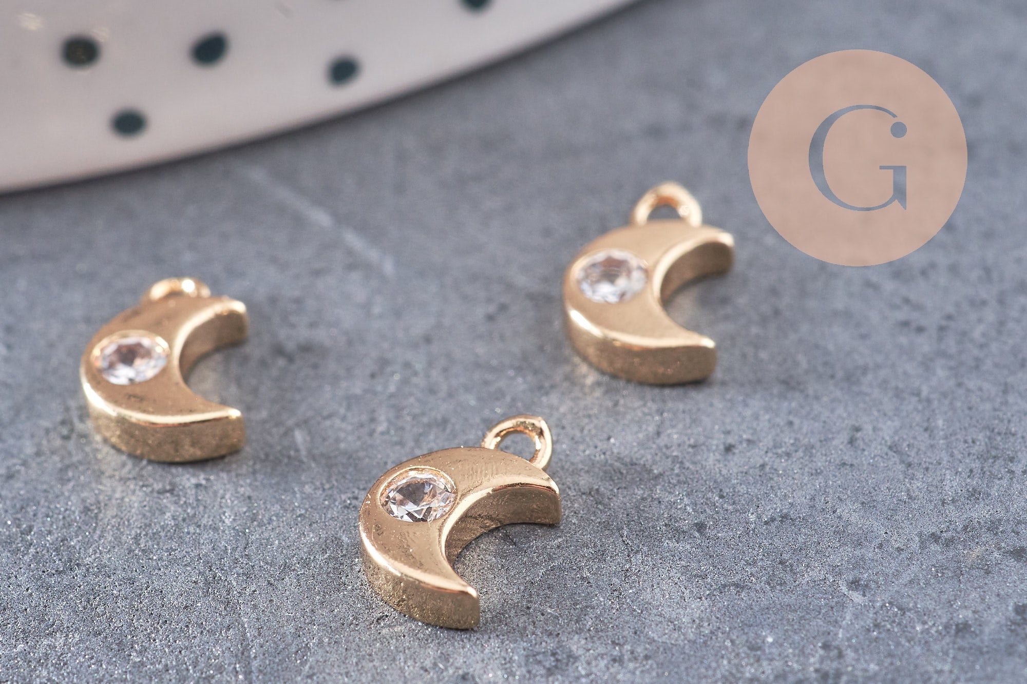 A small gold-plated brass moon decorated with a white zircon to be used as a discreet pendant or charm.