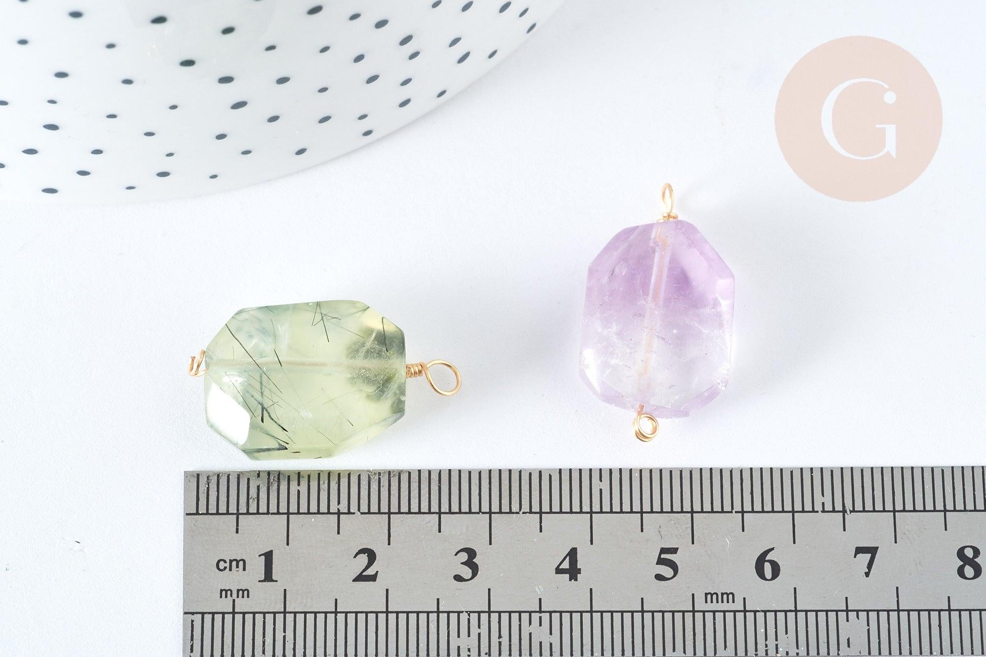 Fall for this pendant in natural citrine or amethyst or rose quartz or prehnite with its golden copper wire.