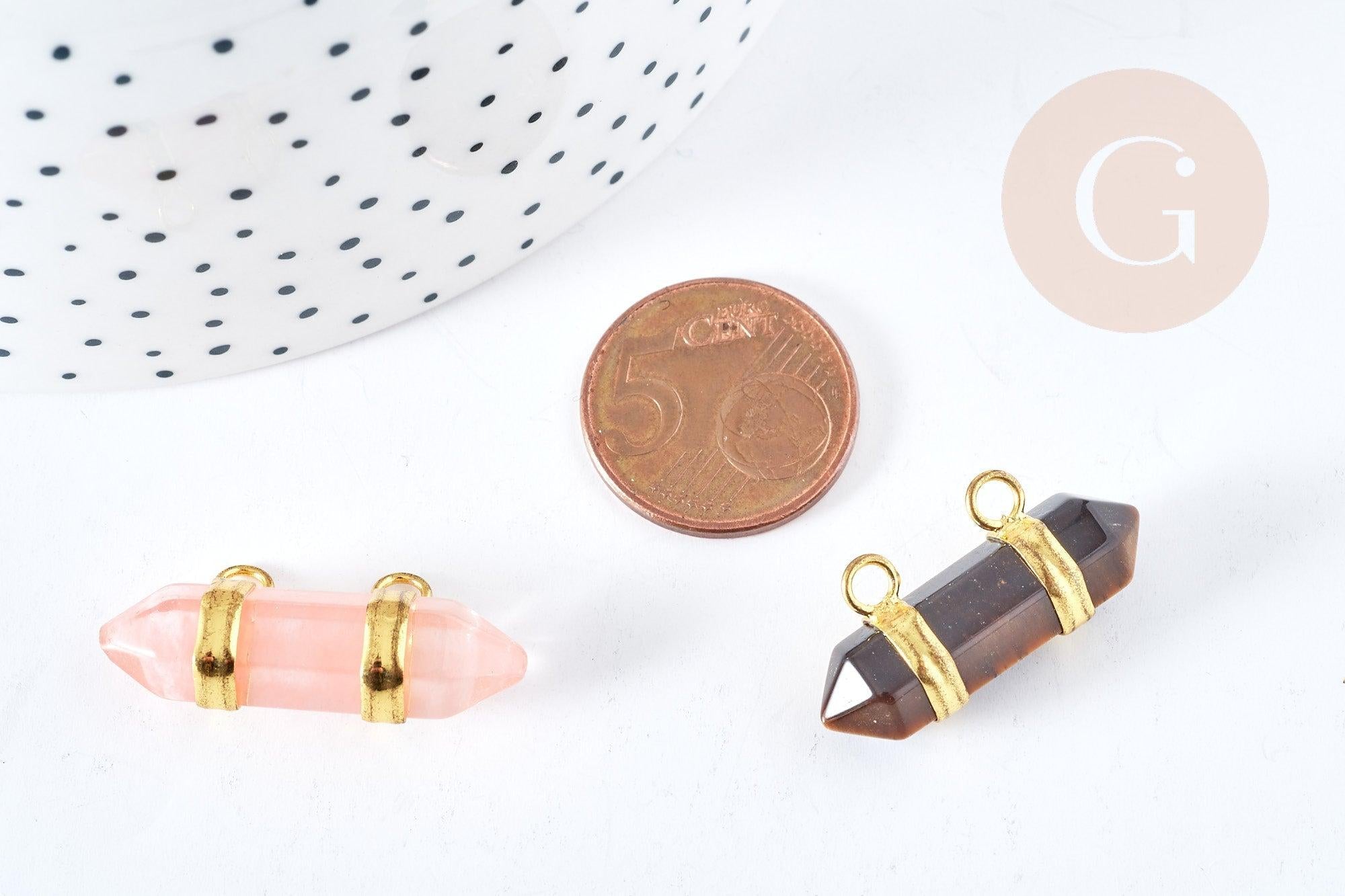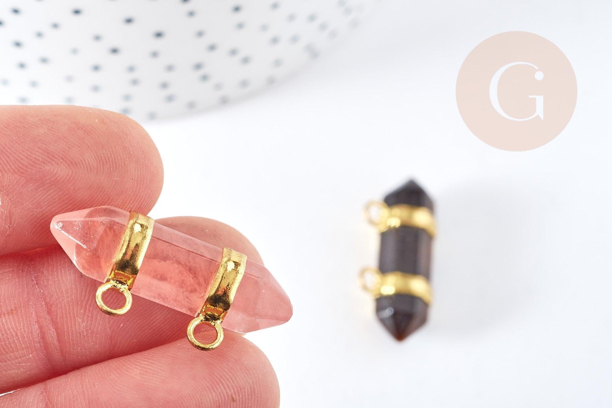 Fall for this double stone point pendant , on a gold zamac support made up of 2 rings.