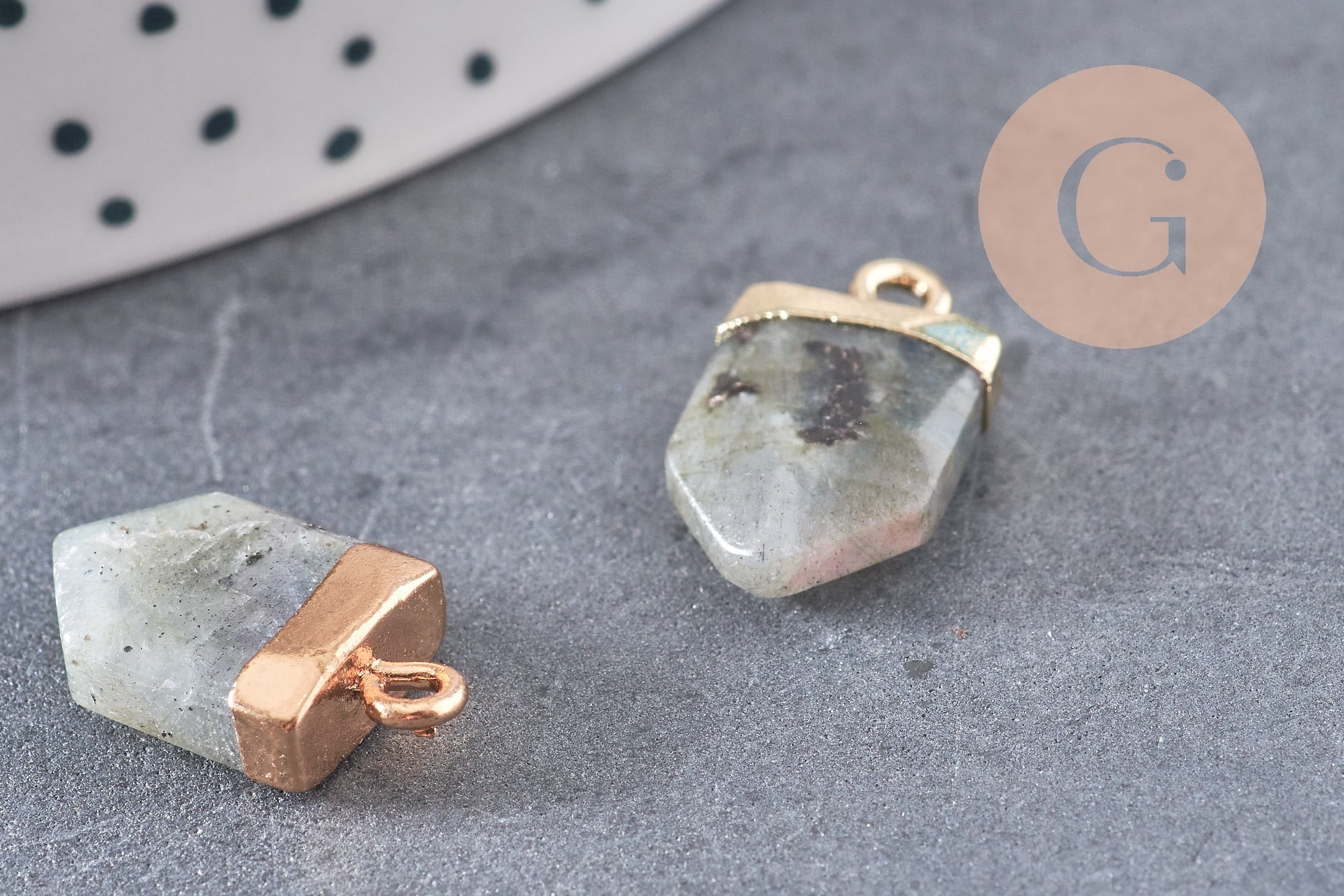Pendentif pointe labradorite naturelle claire laiton doré 19mm, x1 (G5921)