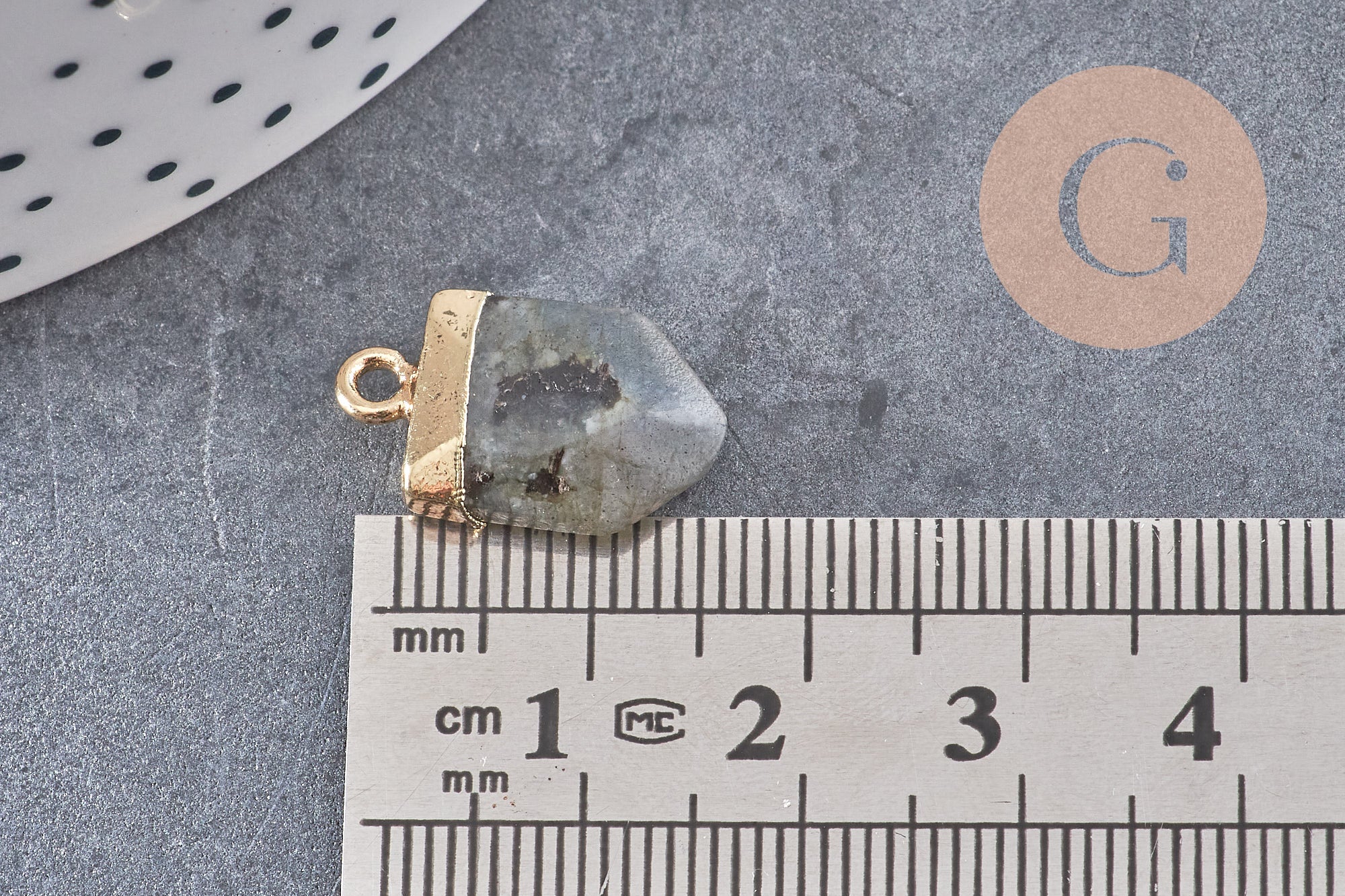 Natural clear labradorite point pendant in gold-plated brass 19mm, x1 (G5921)