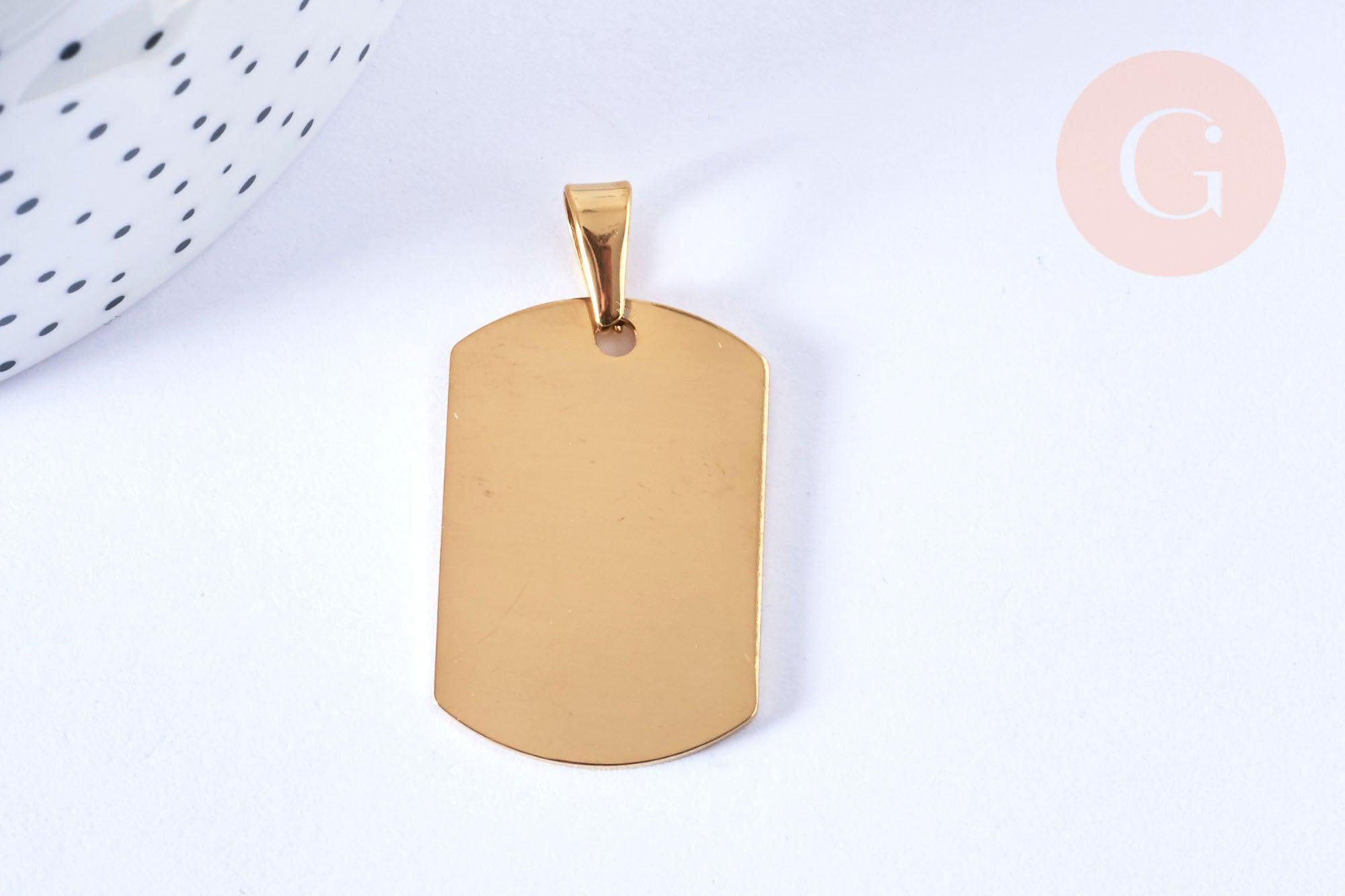 Clean, modern, and timeless, this rectangular pendant in gold-plated 304 stainless steel is an ideal base for personalized DIY creations. Its smooth surface and elegant rectangular shape lend themselves perfectly to engraving (name, date, sweet message, symbol), for a unique piece of jewelry to give as a gift or to wear every day. Its gold plating ensures lasting shine while maintaining the simplicity of a minimalist design.