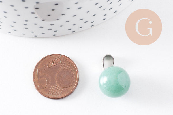 This delicate round pendant, made from natural green aventurine , is mounted on a platinum stainless steel bail.