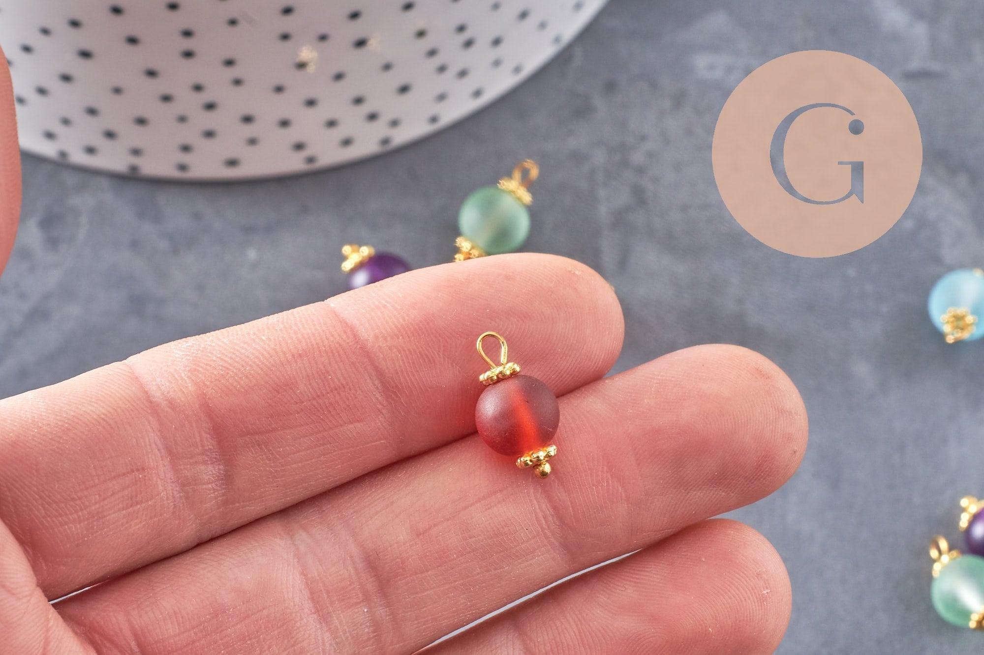 Fall for this pretty pendant made up of a round sandblasted glass bead in different colors, on a golden zamac support.