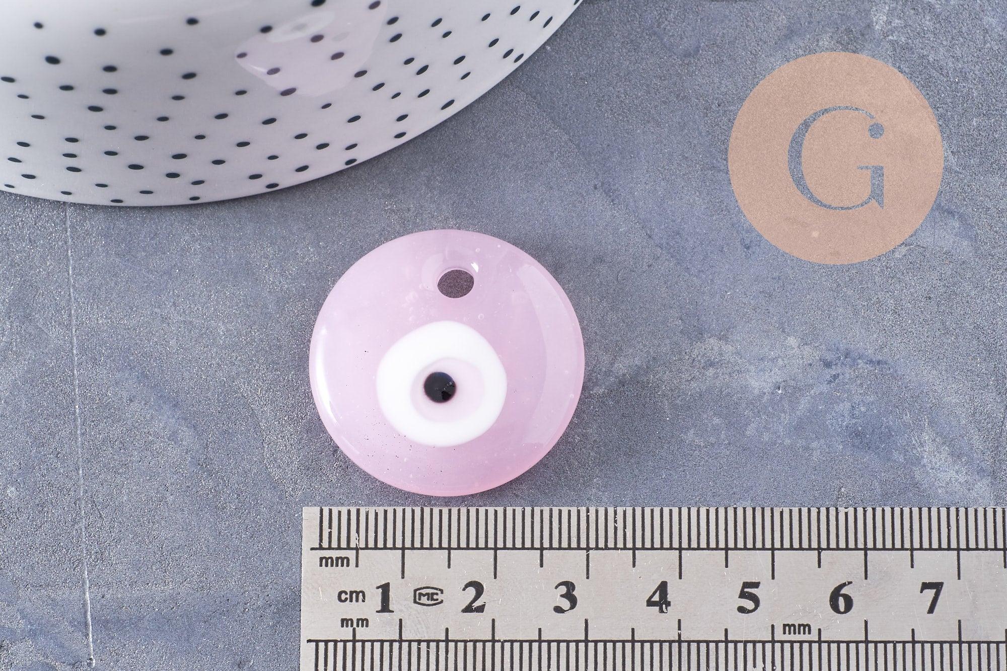 Carefully crafted, this pendant combines the symbolism of the Evil Eye, known to repel negative energies , with a soft and calming pink hue.
