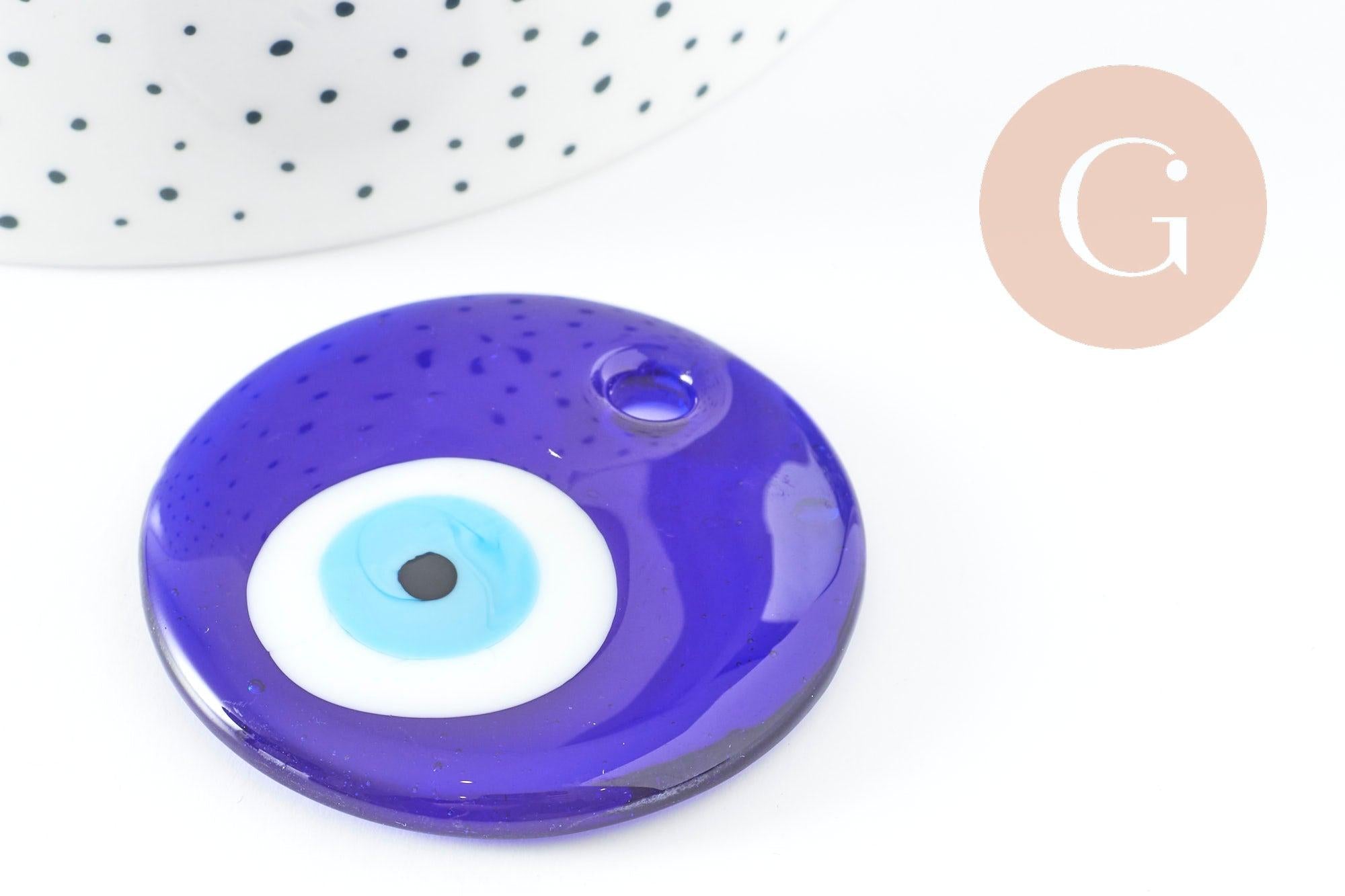 Adopt this round Evil Eye pendant in royal blue glass and let your creativity express itself. Add a touch of luck and protection to your unique and meaningful jewelry designs.