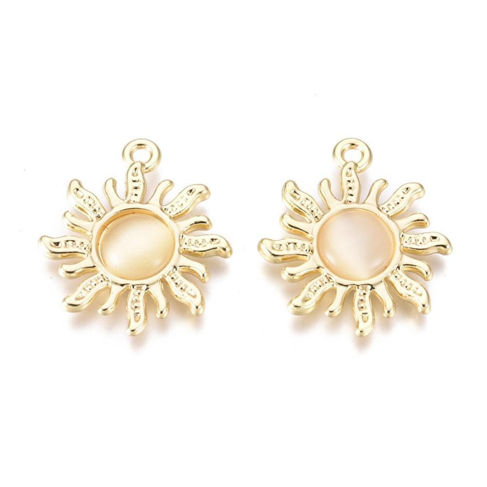 Pendentif soleil zamac doré cabochon oeil de chat 21.5mm, x2 (G5492)