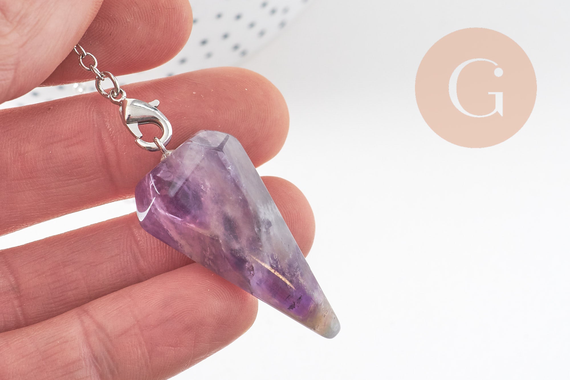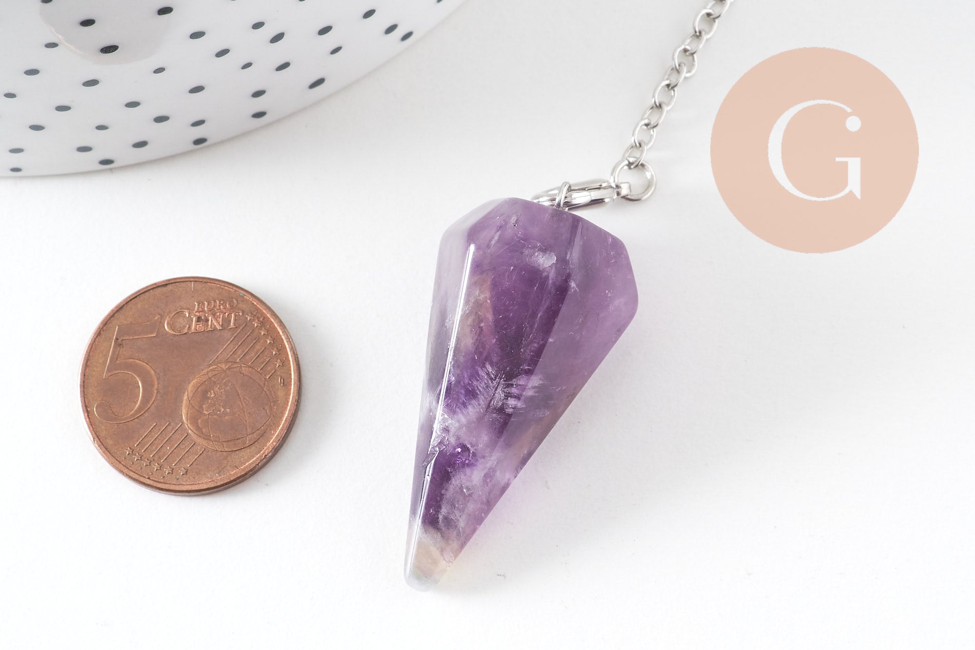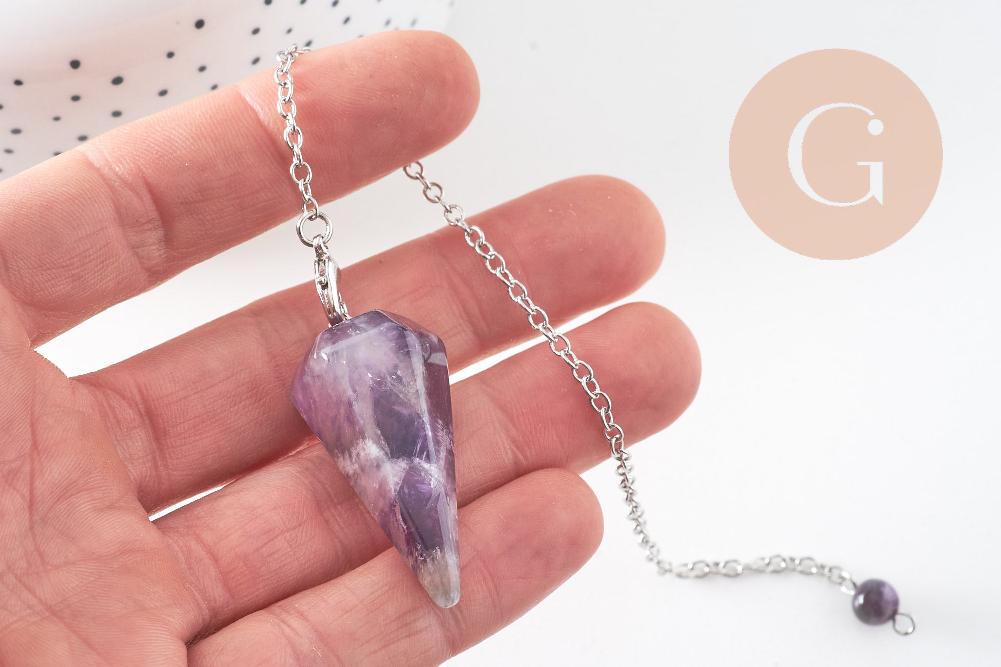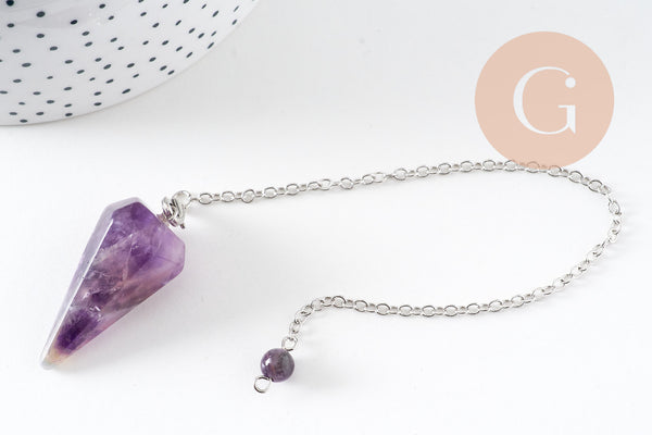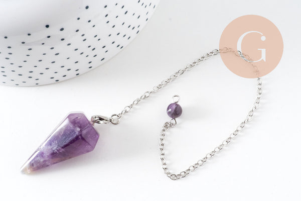Natural amethyst dowsing pendulum, silver chain, magnetism pendulum, litotherapie, jewelry creation, 23cm, unit