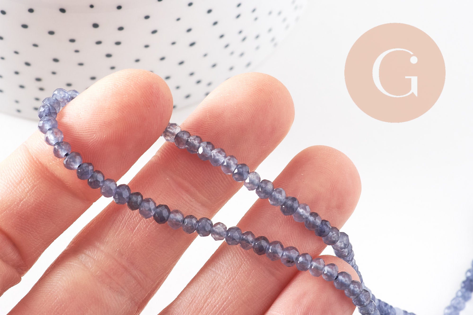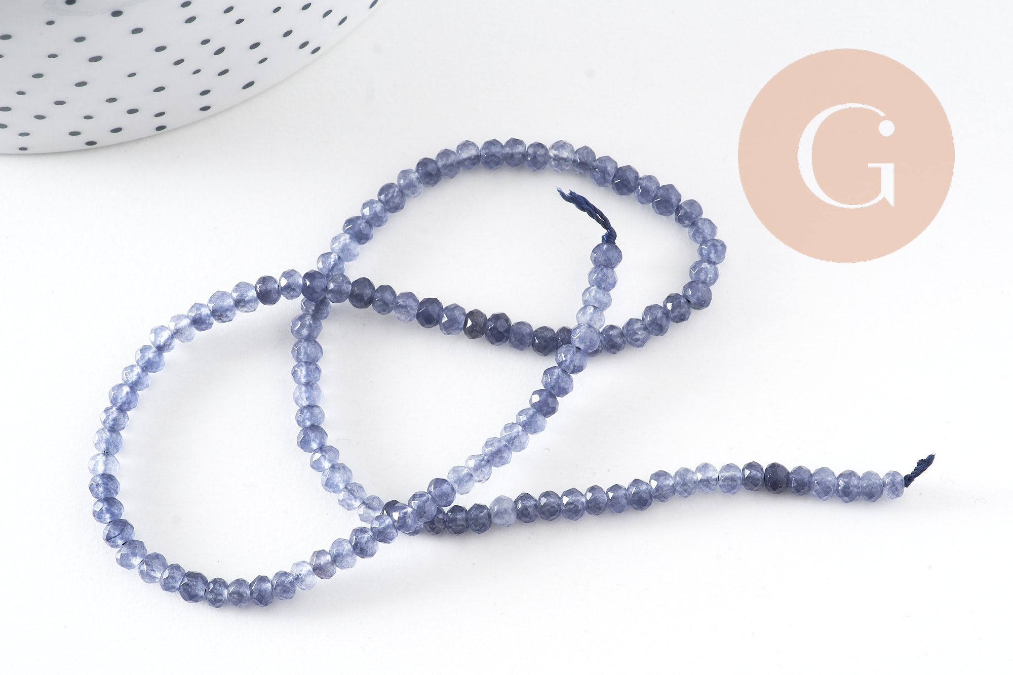 Perle abacus jade naturel teinté bleu facetté, x1 fil de 35 cm (G9651)