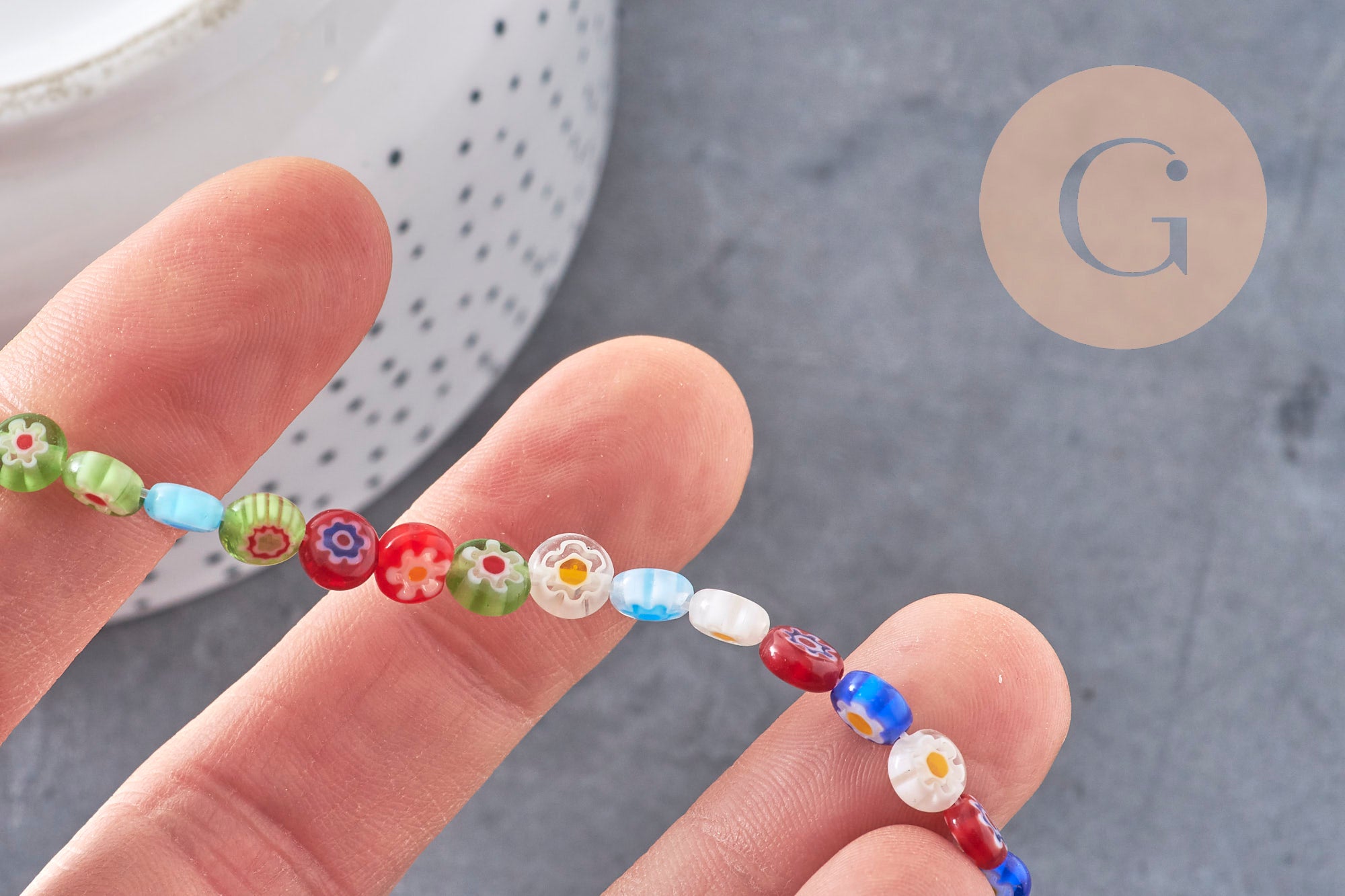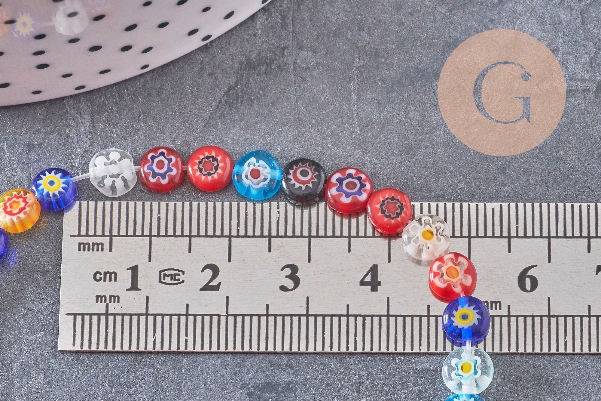 Perle cercle verre millefiori 6mm, x1 fil de 35.8cm (G10940)
