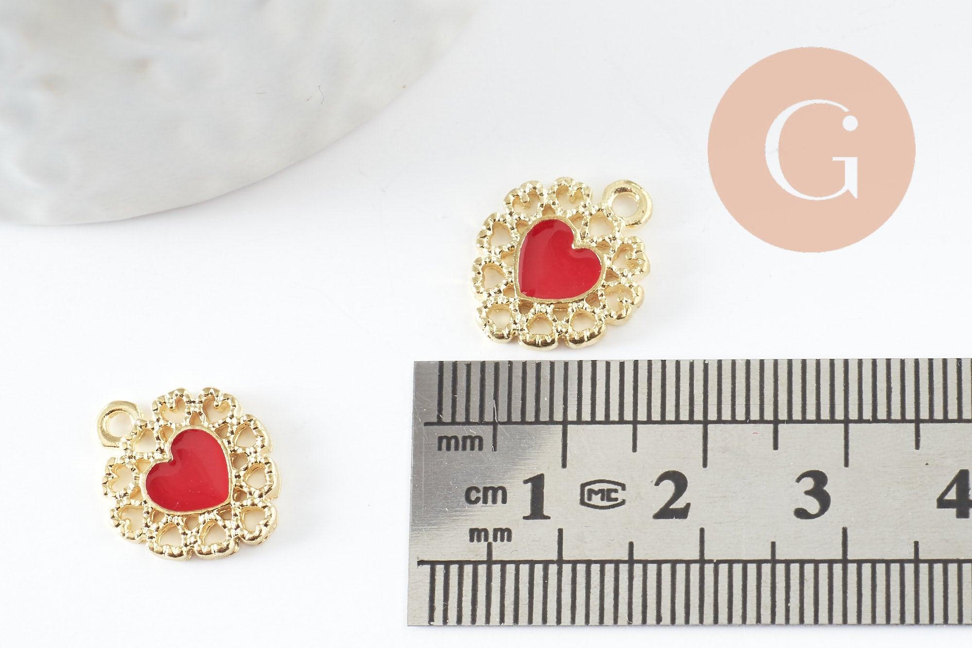 Adopt this heart pendant in gold zamac and red enamel right away to create your little love jewels: ideal for creating earrings and necklaces