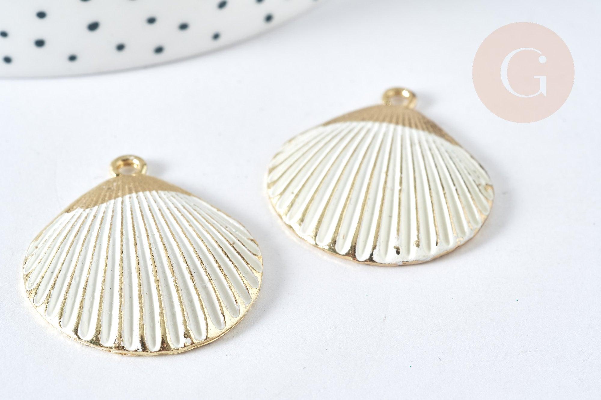 Pendentif coquillage zamac doré patiné blanc 35,5mm, x1 G7439
