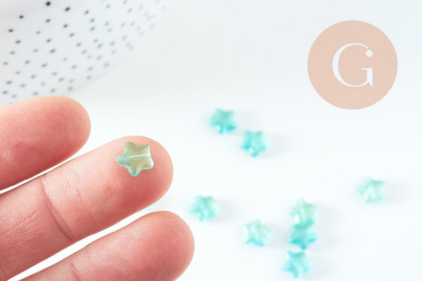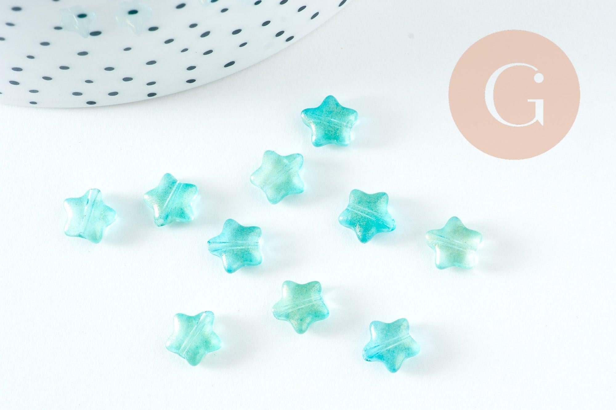 Add a celestial and sparkling touch to your DIY jewelry with these turquoise star glass beads adorned with gold powder. Their imitation jade finish gives them a precious and trendy look, ideal for your fairytale or summer creations.