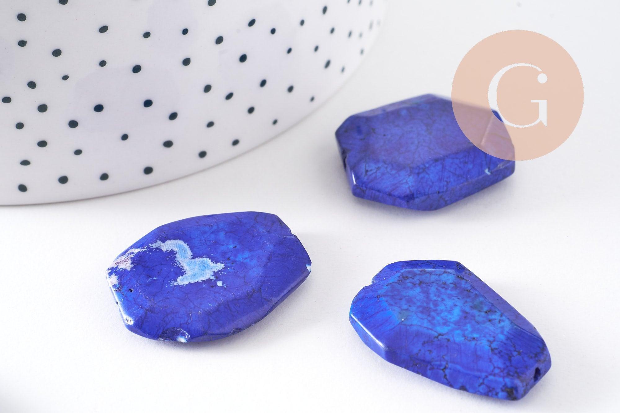 Perle hexagonale howlite bleue, howlite naturelle, perle bleue, x5 (G5491)