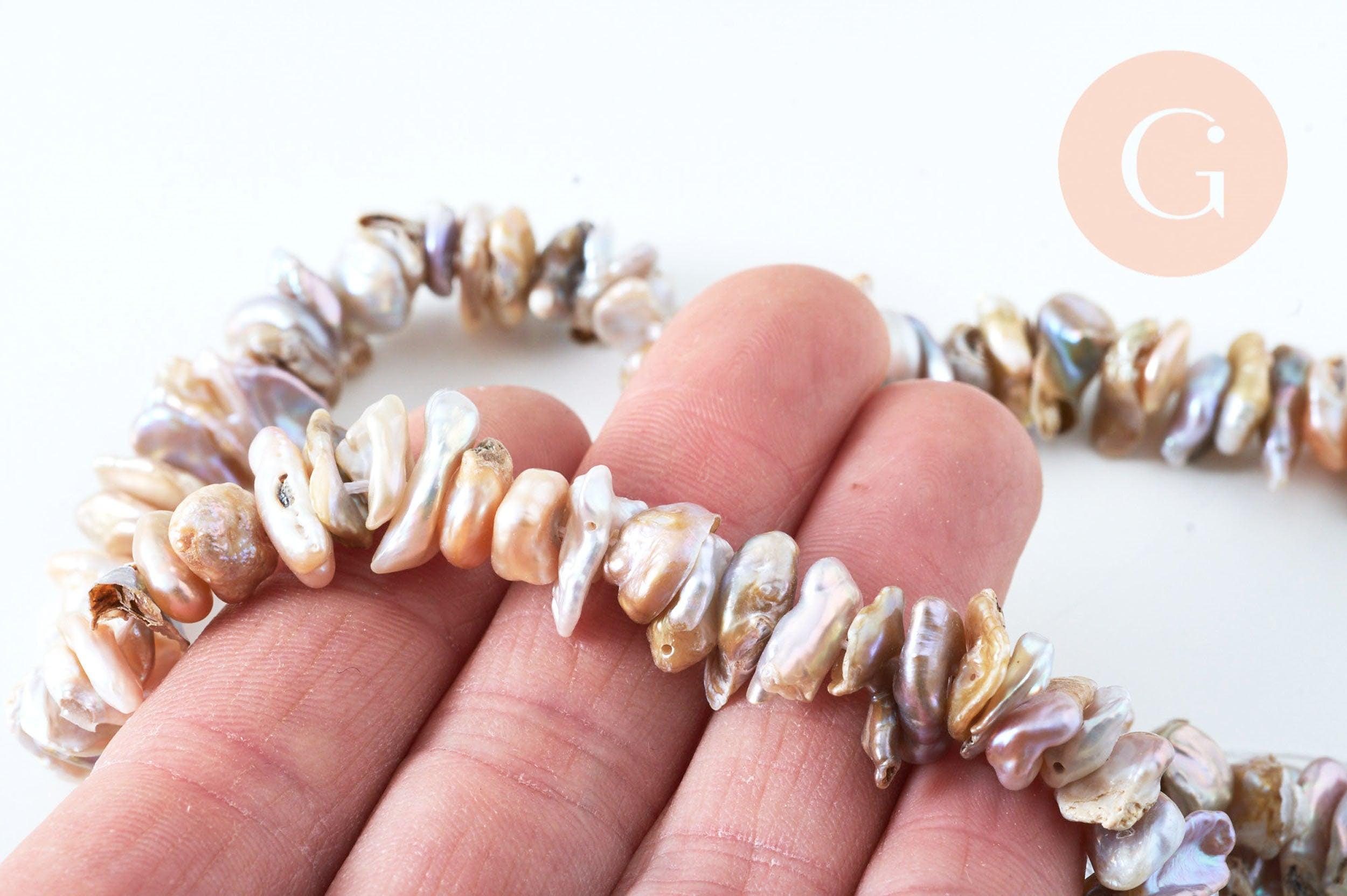 Natural beige-pink freshwater keshi chip pearls to create pearl jewelry, a timeless trend. To use these freshwater pearls, for example, create a bracelet with elasticated thread , inserting each mother-of-pearl pearl with a golden spacer pearl. Also make a pretty...