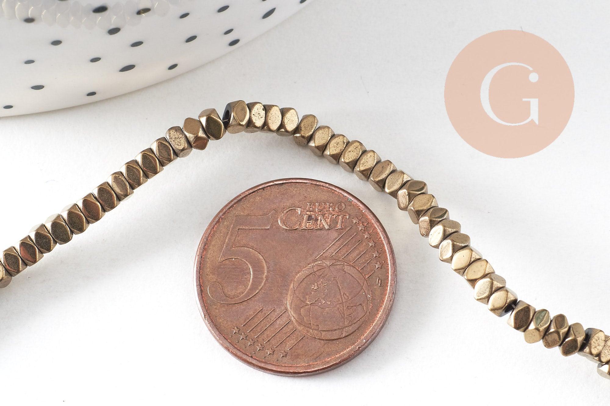 Perle losange hématite bronze non magnétique, des perles en imitation de pyrite pierre, 3x3mm,41cm le fil de 200 perles, x1 (G5022)