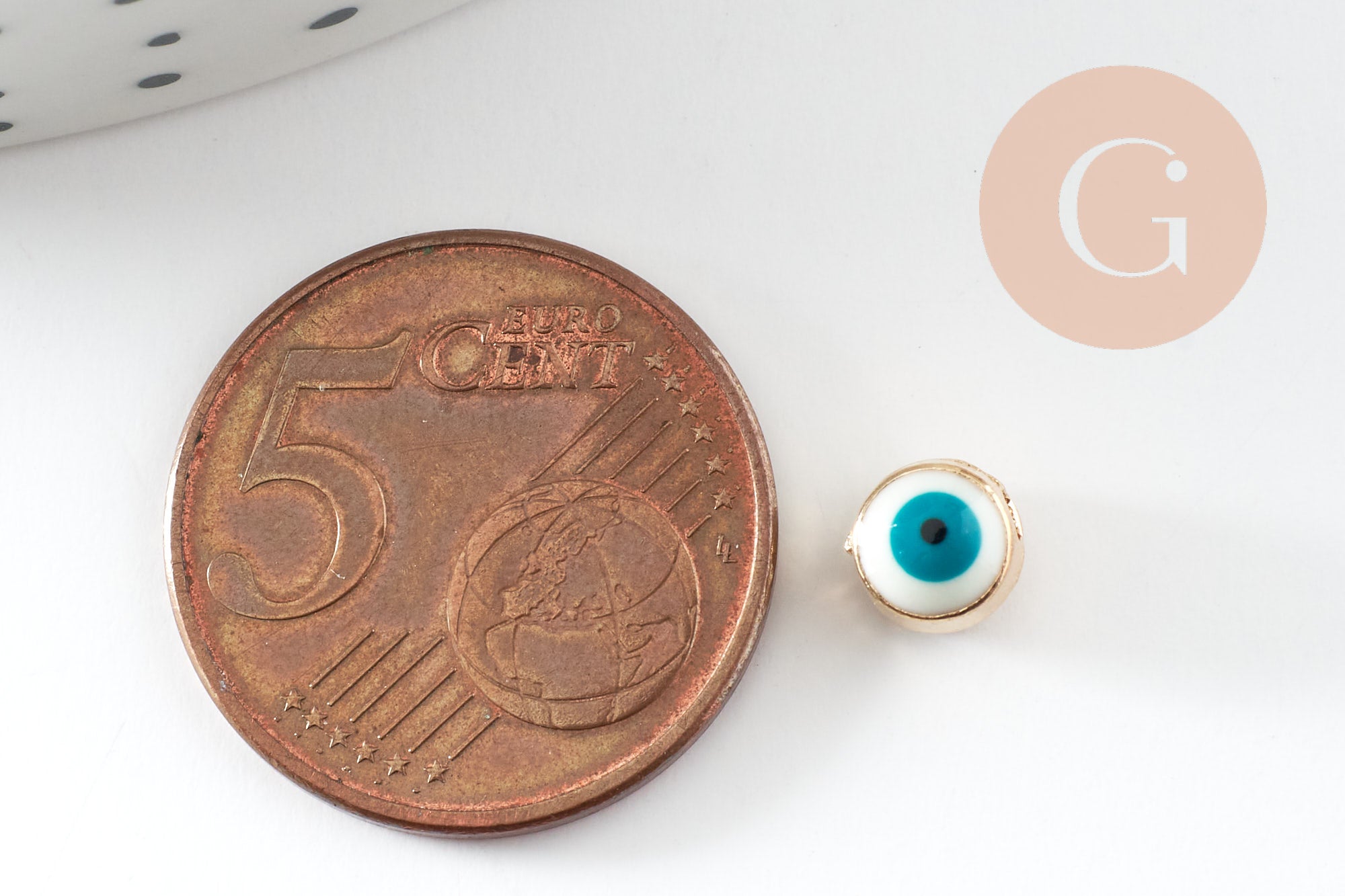 Golden zamac bead, enameled in white, with "the evil eye" motif.