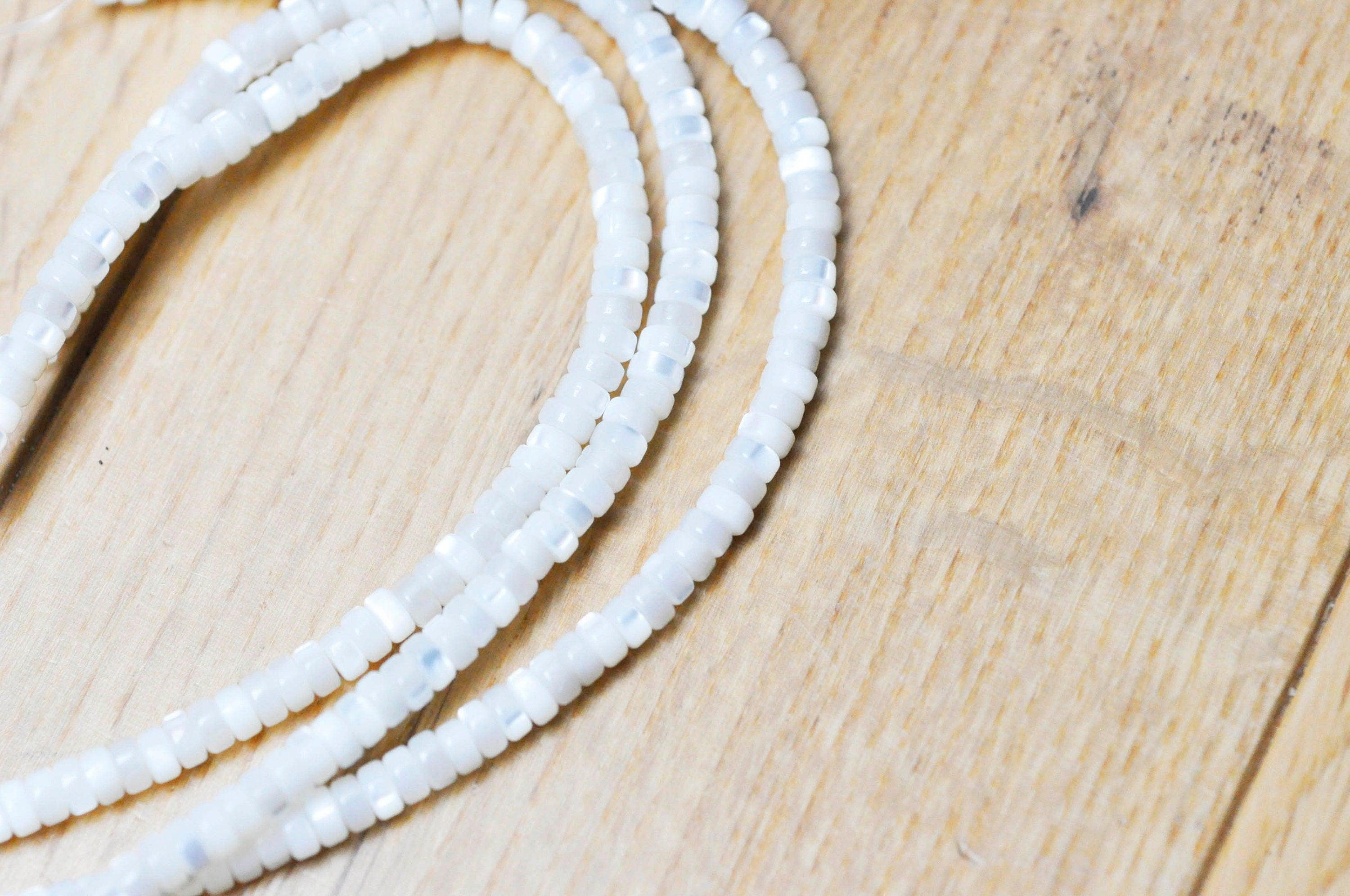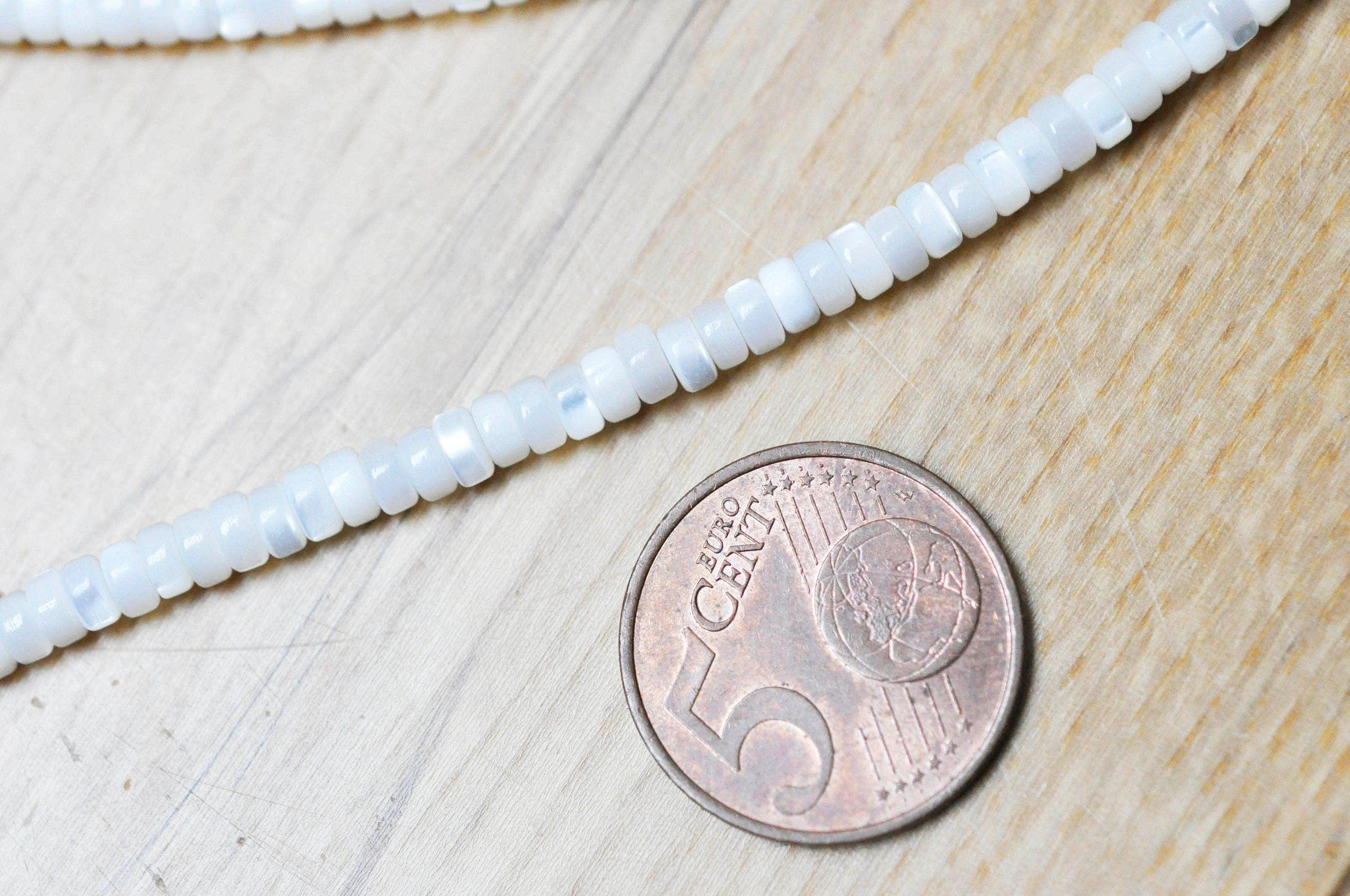 natural white mother-of-pearl heishi pearl, ivory shell tube, shell pearl, jewelry creation, 2x4mm, thread of 185 pearls 1 full strand of natural white mother-of-pearl heishi rondelle beads (approx. 38cm) A lovely product for making jewelry in the very fashionable shell...
