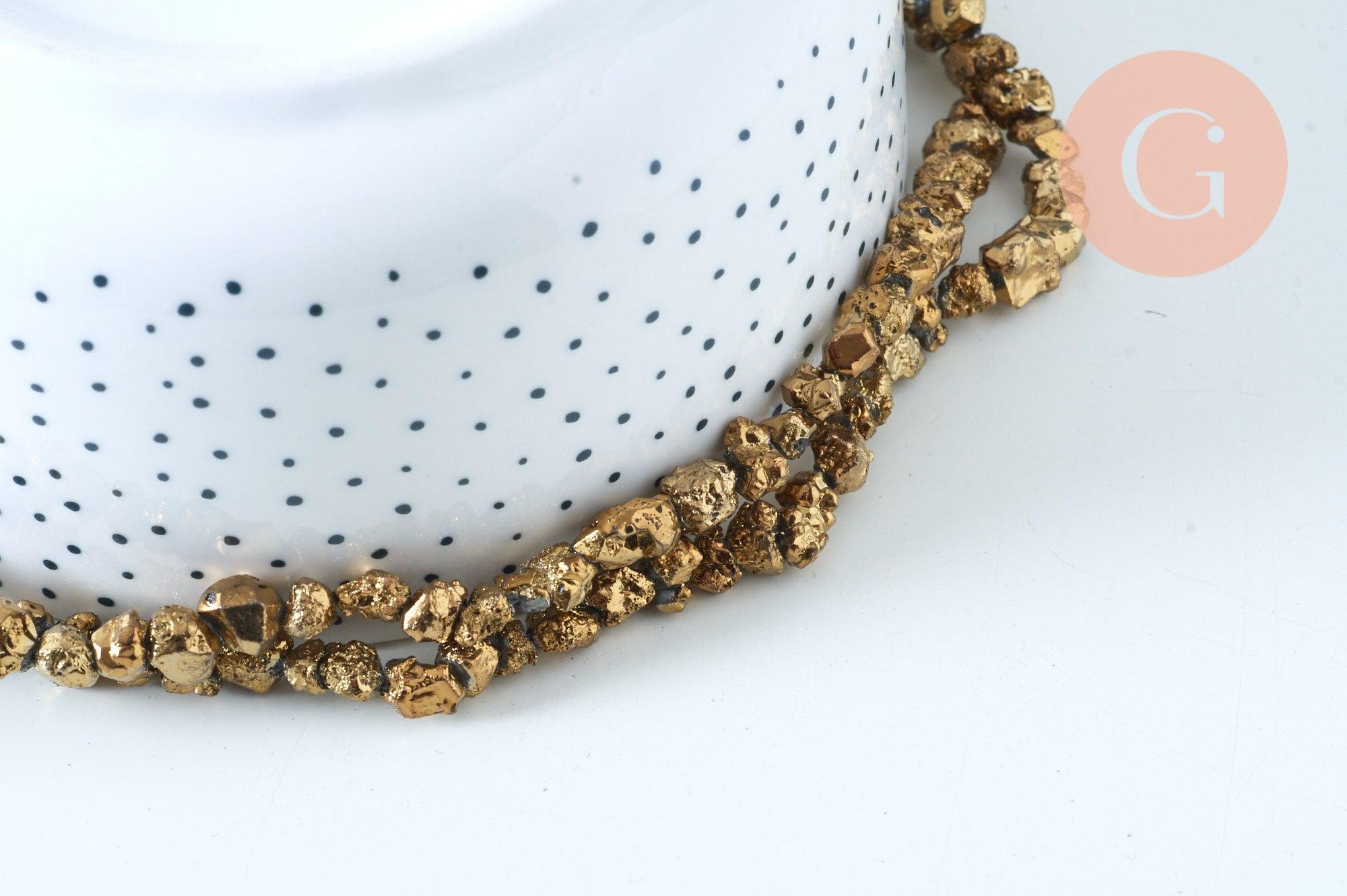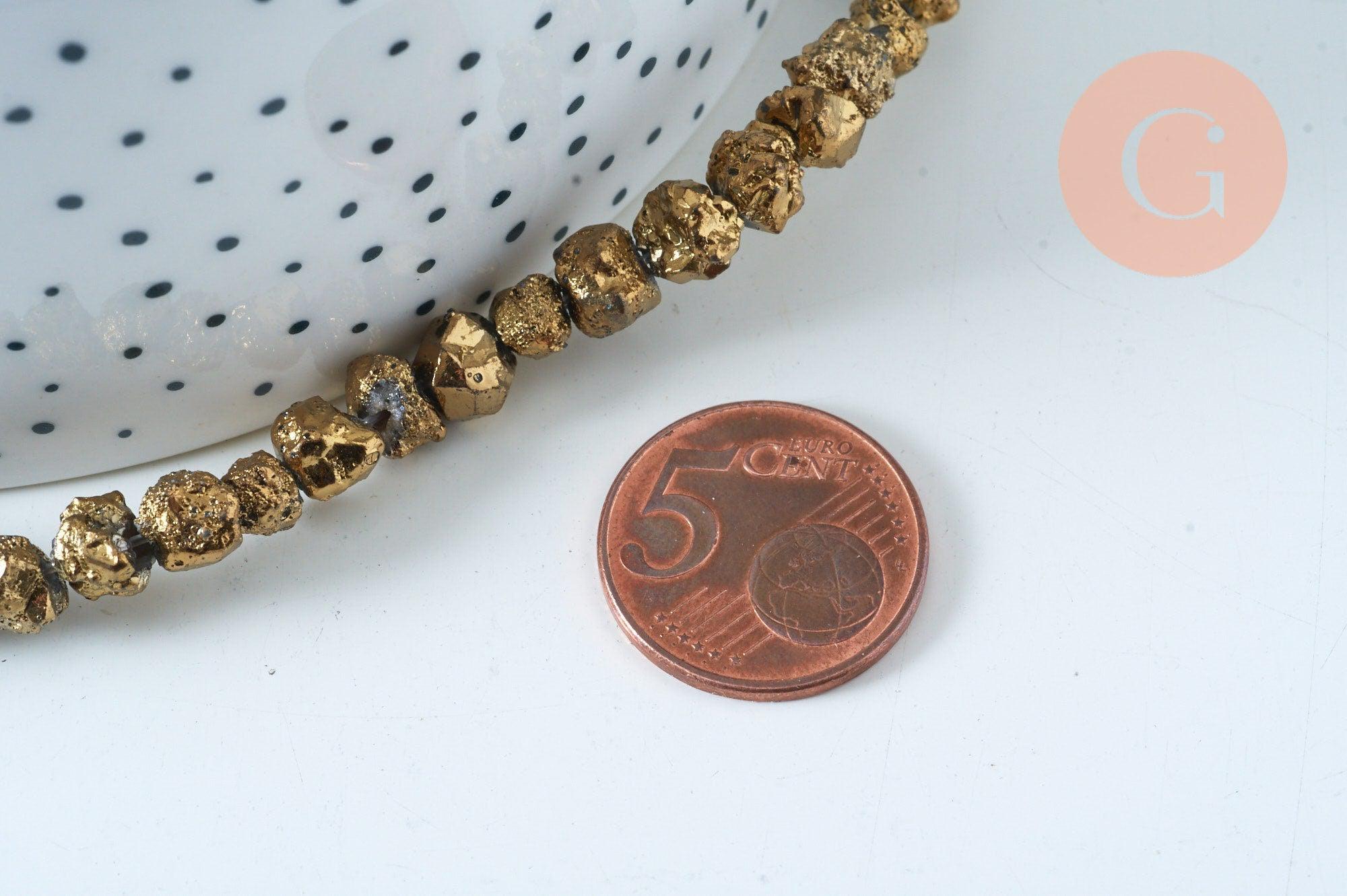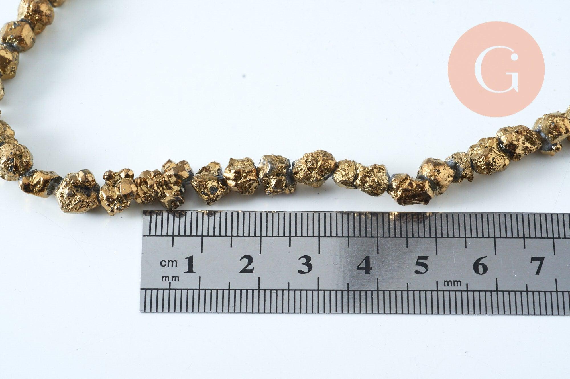 EP bead nuggets raw quartz golden round bead 8-12mm, x1 strand of 40cm G6186