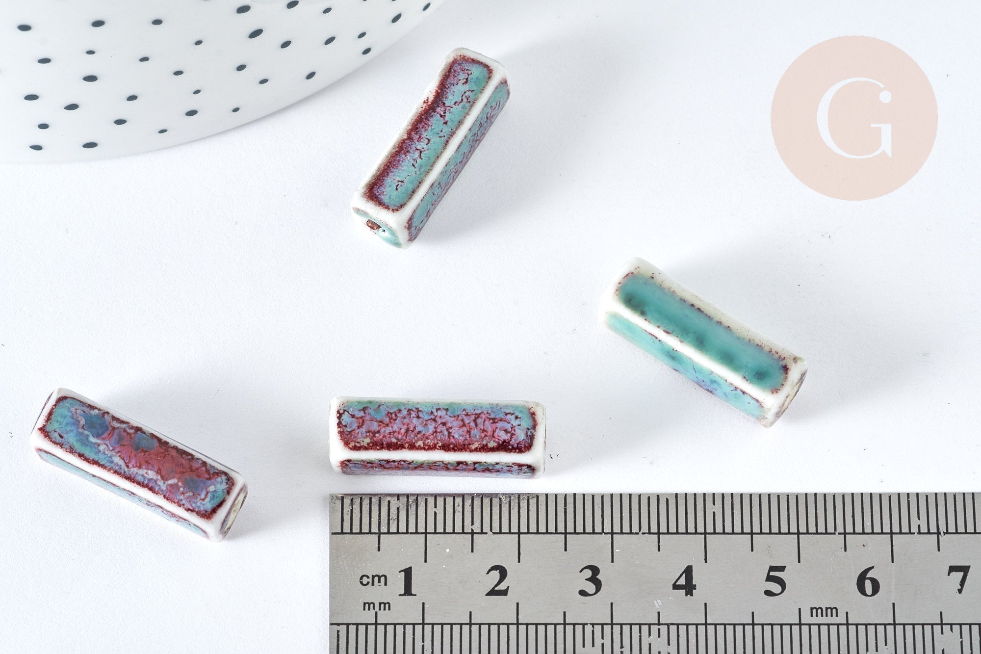 EP Light blue rectangular porcelain pearl 25~29mm, ceramic jewelry creation, x 5 G7480