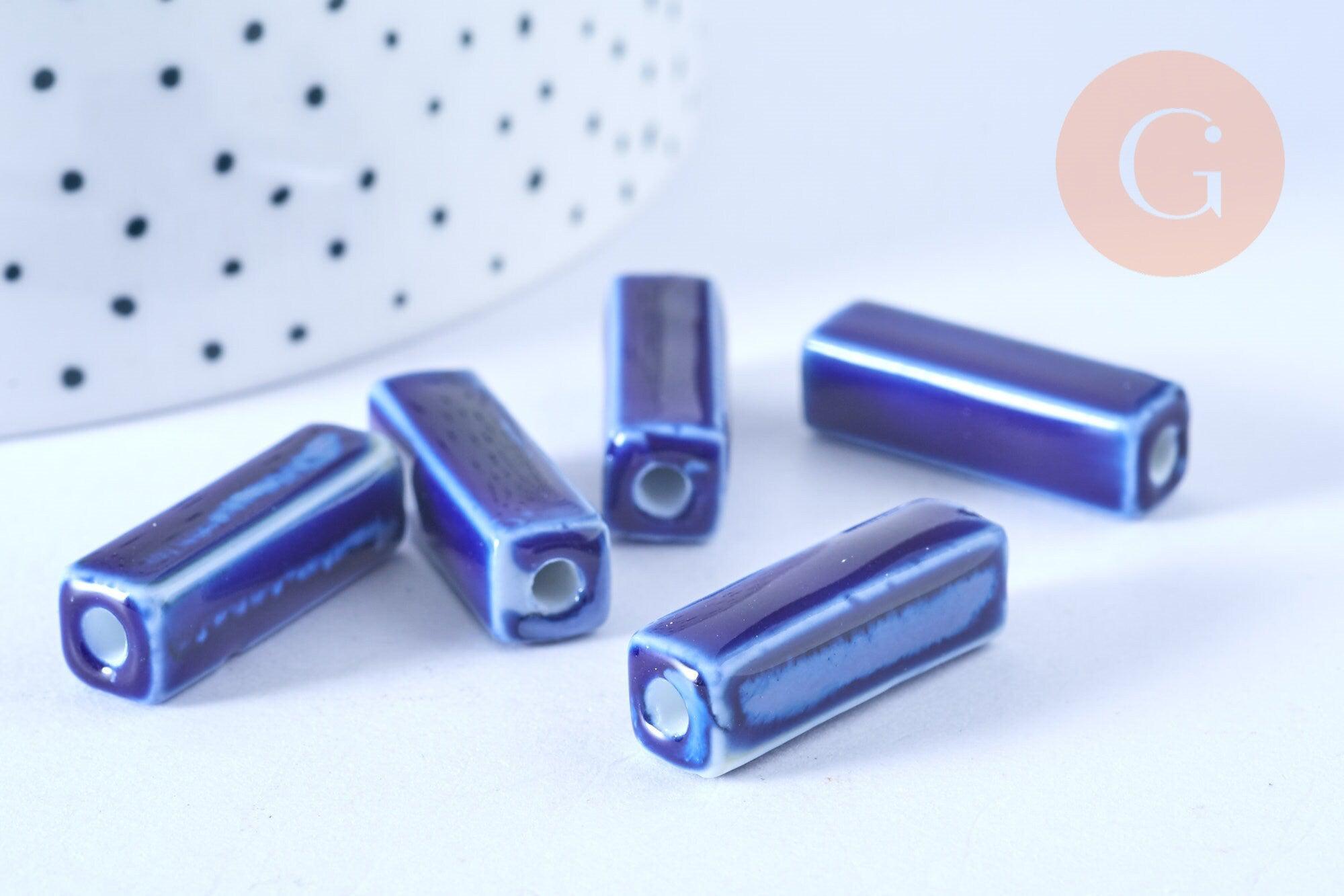 A set of 5 rectangular blue enameled porcelain beads These are beautiful handmade beads.