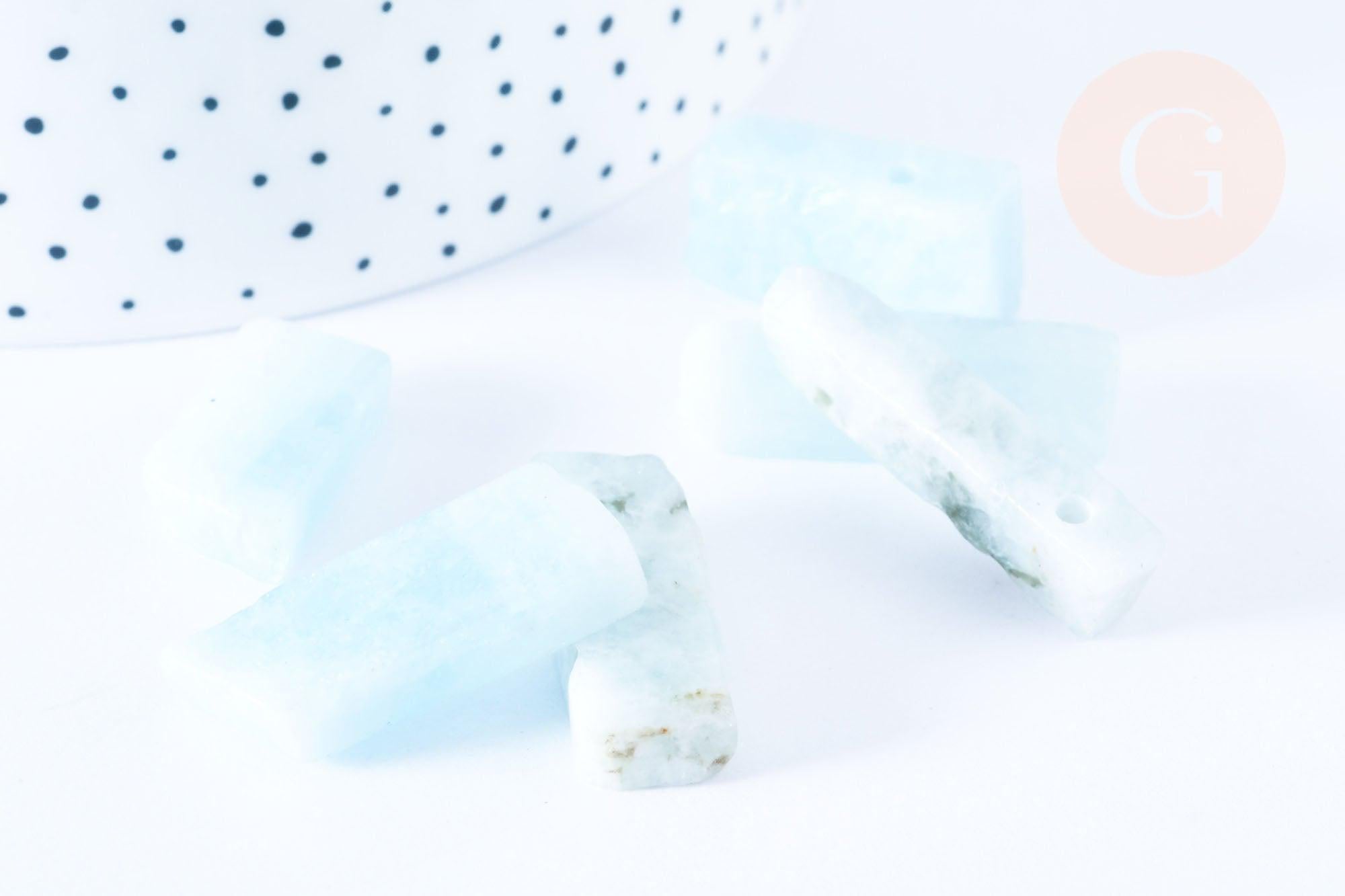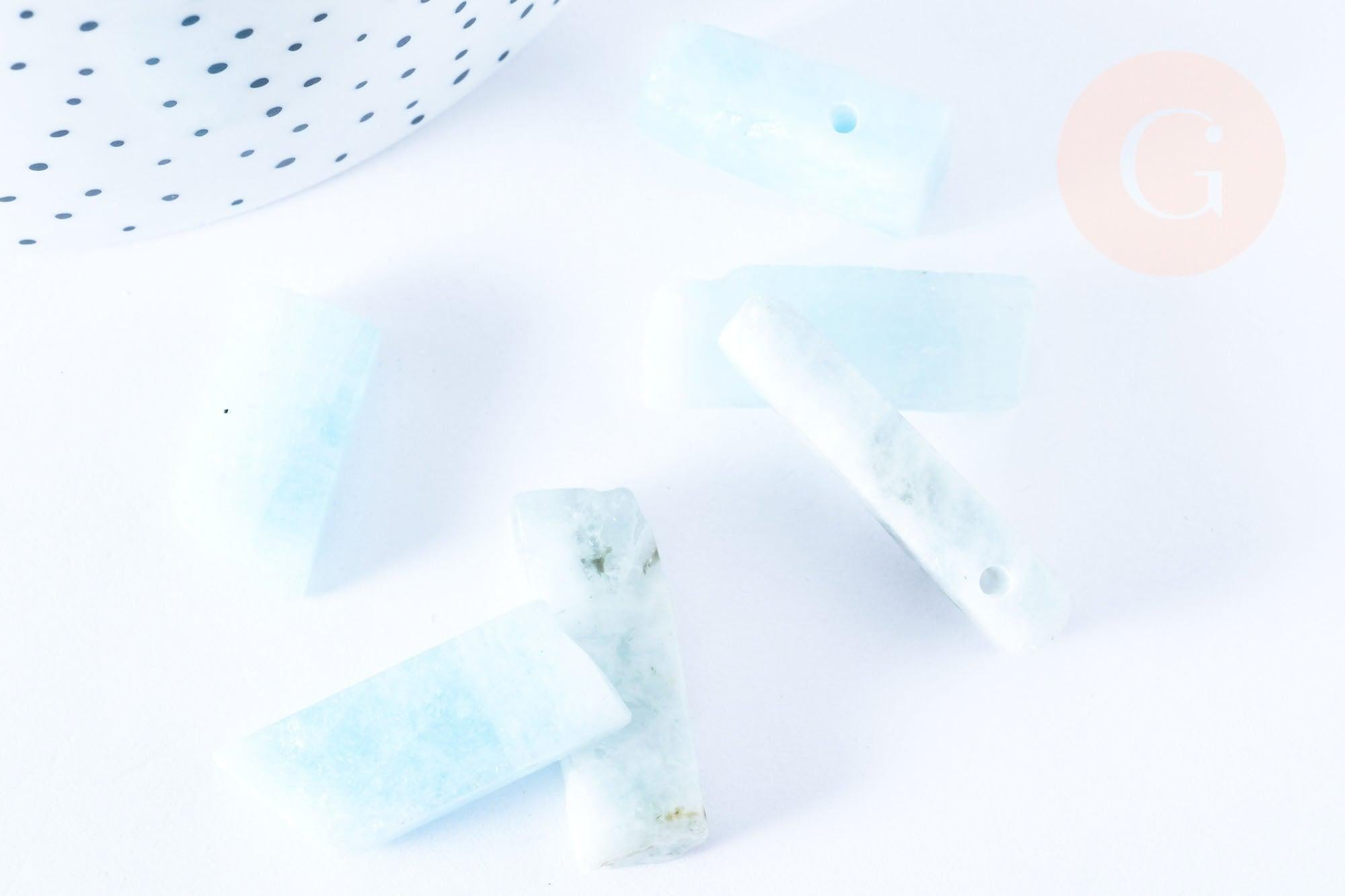 Perle rectangle aigue-marine 35-42 mm, pierre naturelle, x 2 (G6452)