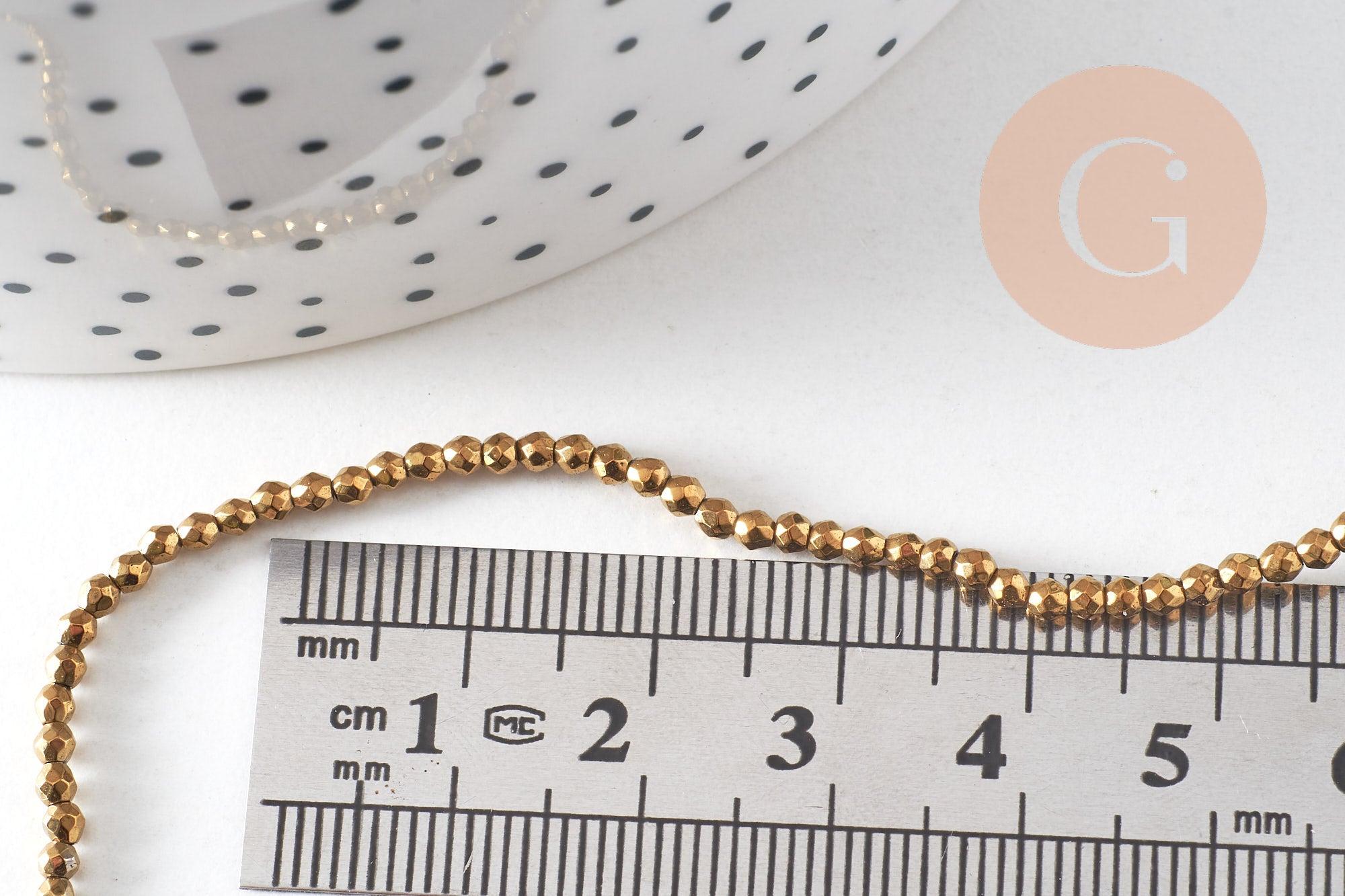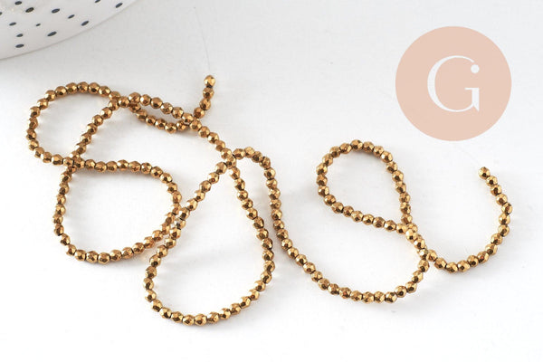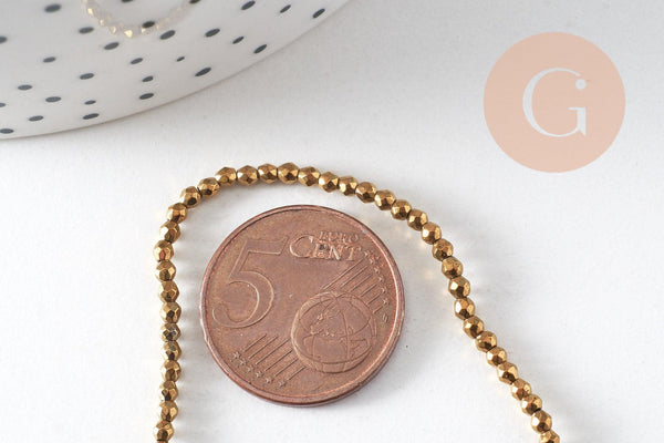 Perle ronde facetté hématite dorée 2mm, x1 fil 39.8cm (G4428)