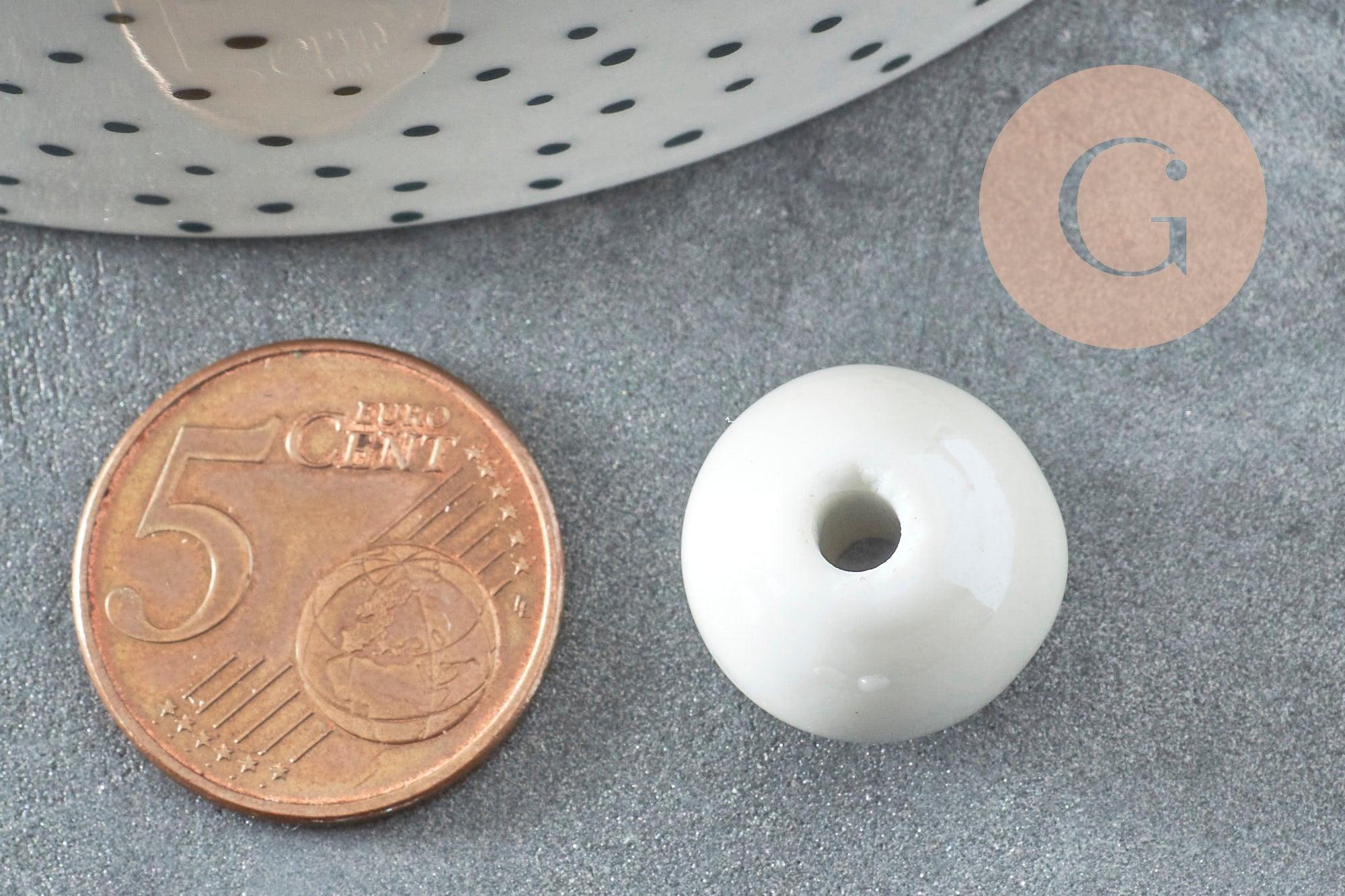 Perle ronde porcelaine émaillé gris clair 16mm,perle céramique, fabrication bijoux, céramique blanche, x10 G9447