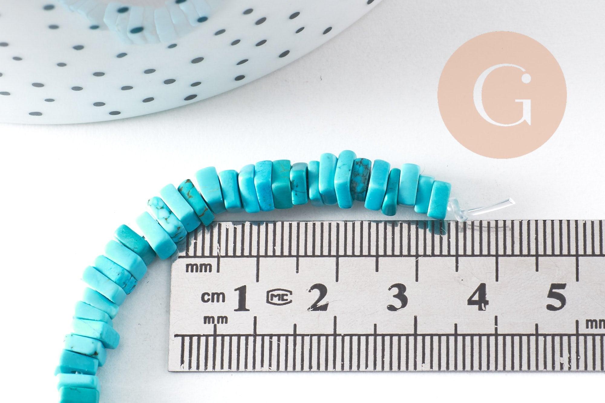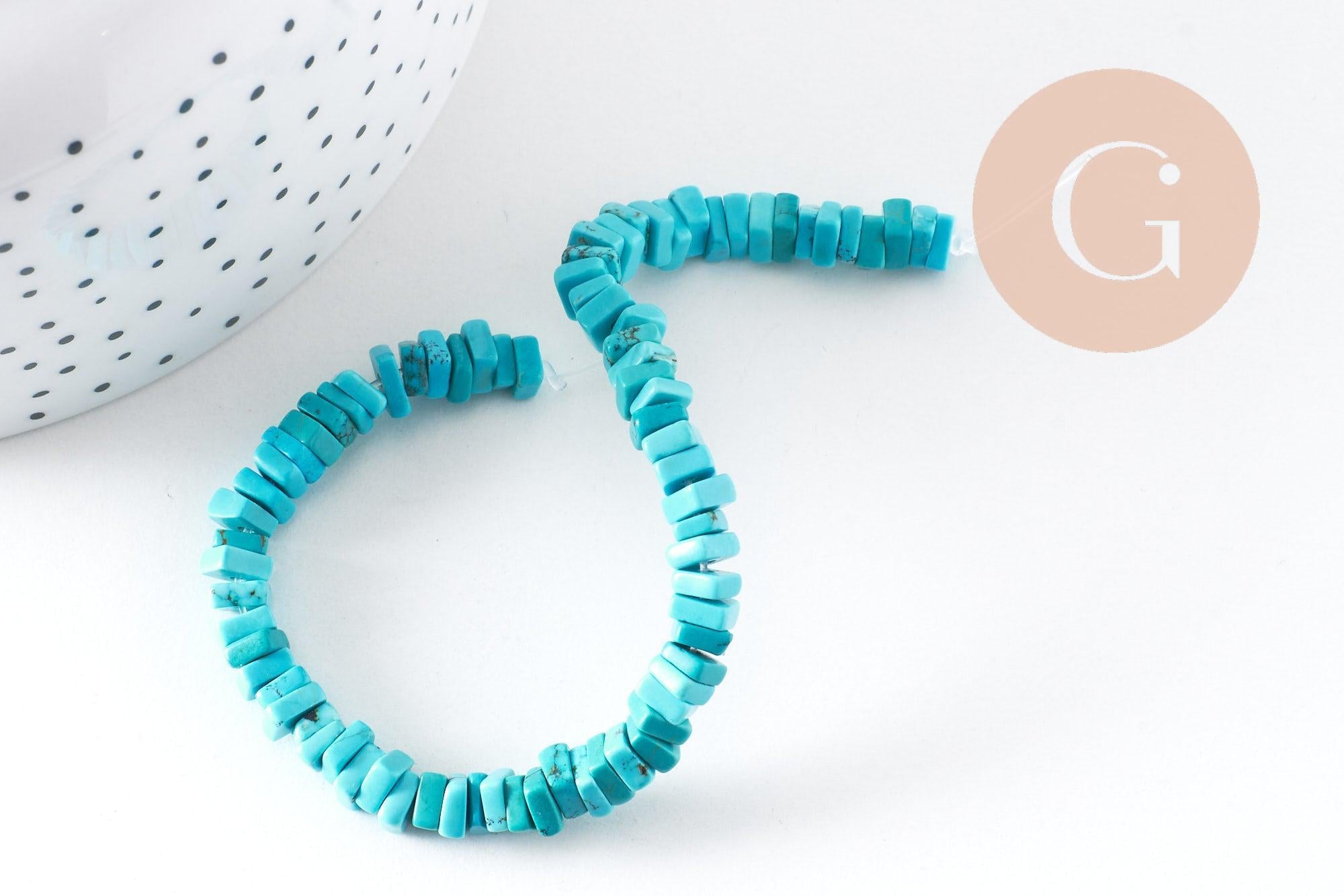 Add a bohemian, sunny, and mineral touch to your creations with these square heishi beads in natural, heat-treated turquoise . Their flat, graphic shape combined with their luminous turquoise color makes them a must-have for ethnic, summery, or minimalist jewelry. These beads pair perfectly with delicate chains, gold beads, or other natural stones for elegant and contemporary designs.