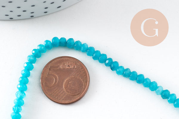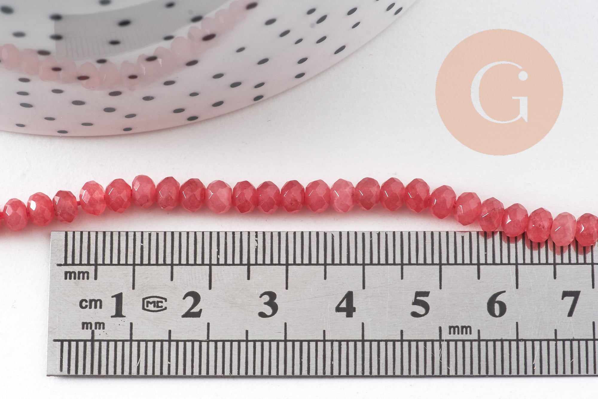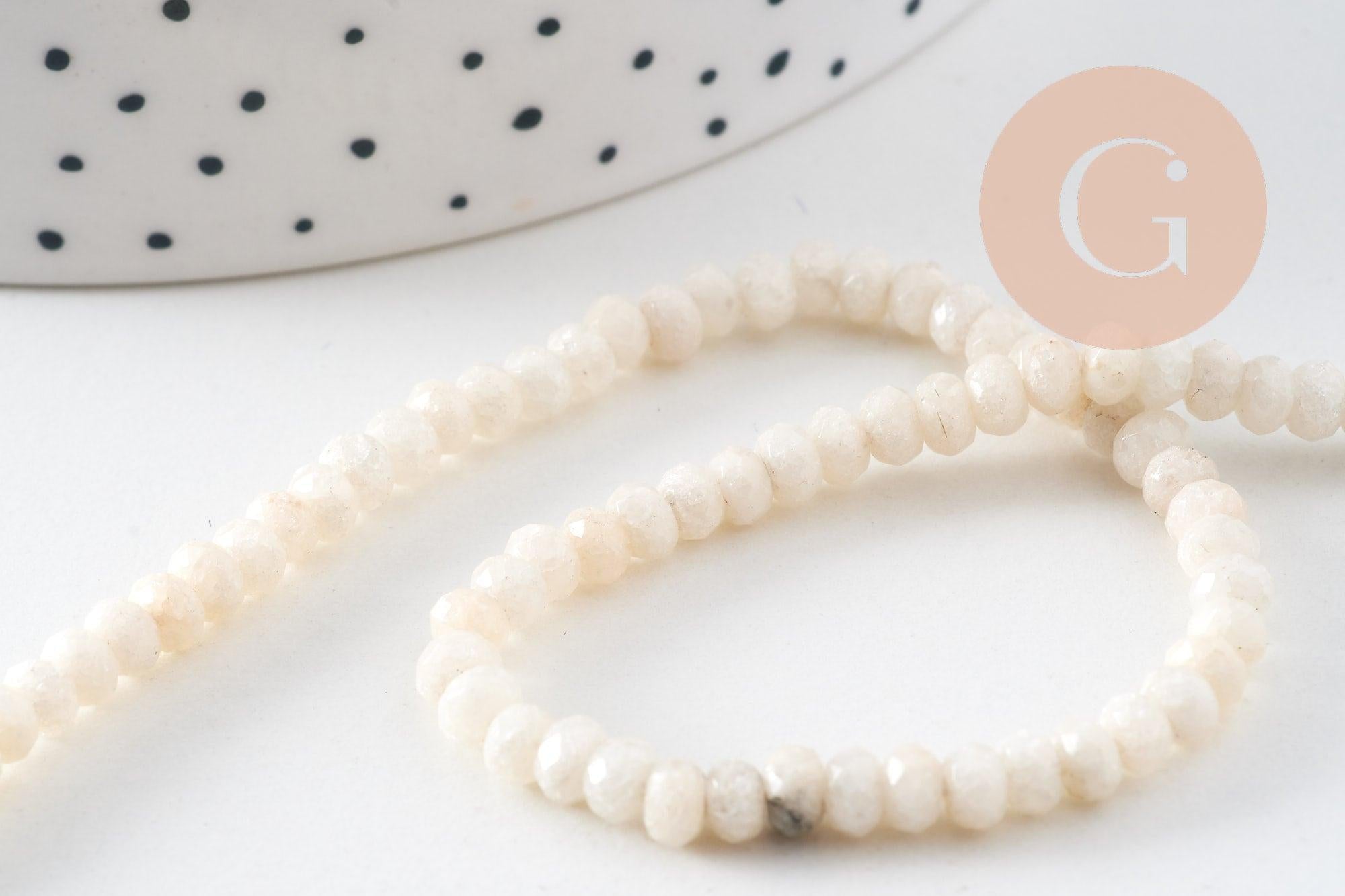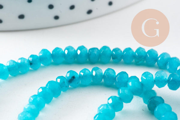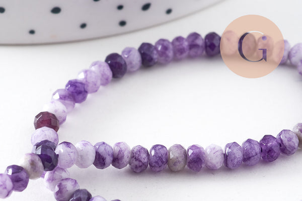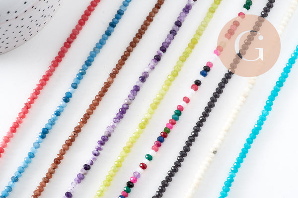 Enhance your jewelry creations with these faceted rondelle beads in dyed natural jade , available in a superb range of colors: black, pink, yellow-green, turquoise, purple, blue, grey-beige, ivory or multicoloured.