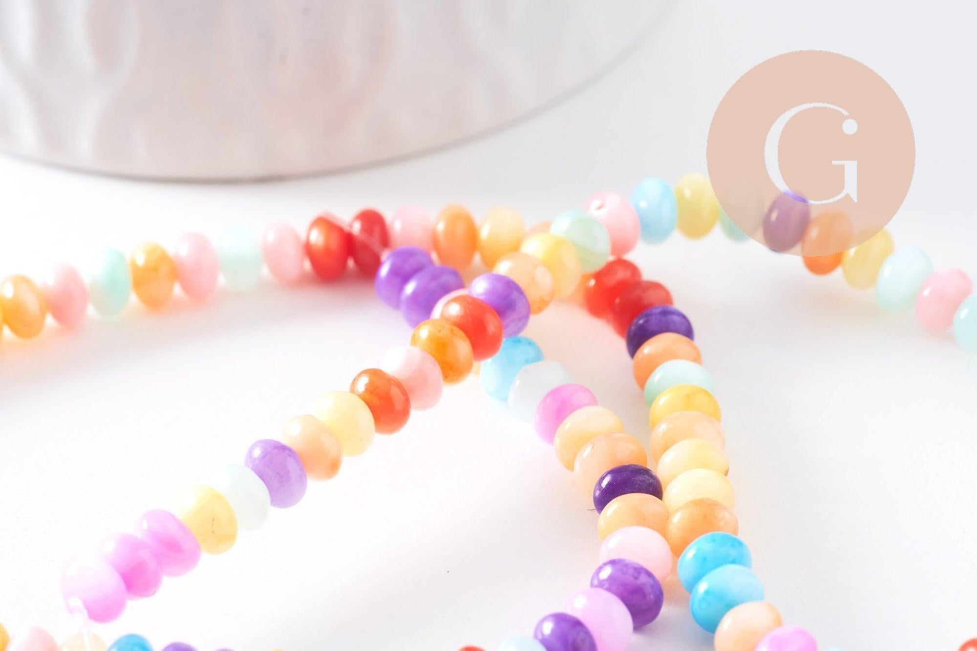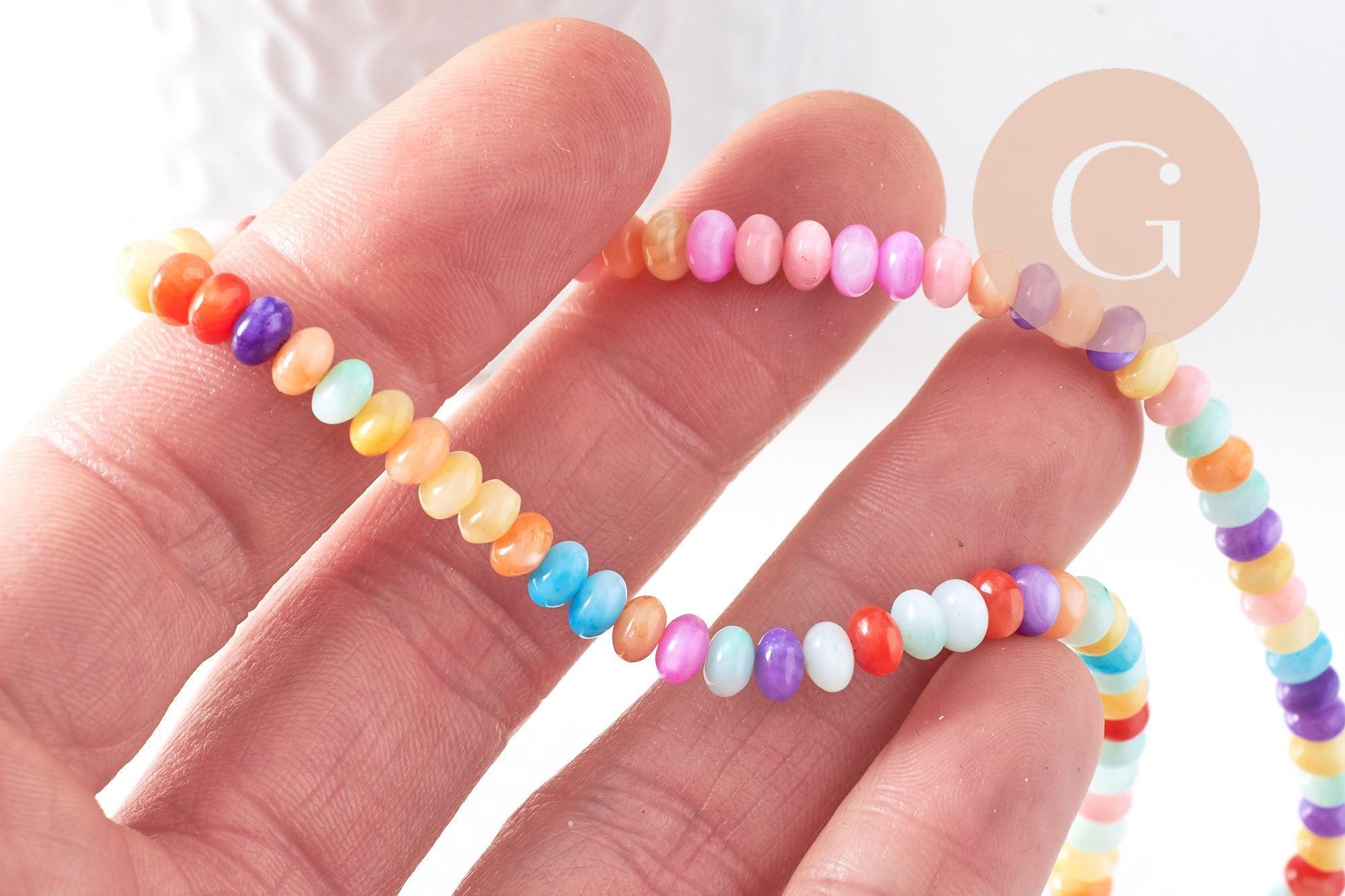 Add a joyful and bright touch to your creations with these multicolored natural mother-of-pearl rondelle beads . Their soft and shimmering finish recalls the pearly shine of shells, perfect for jewelry with a bohemian and trendy style.