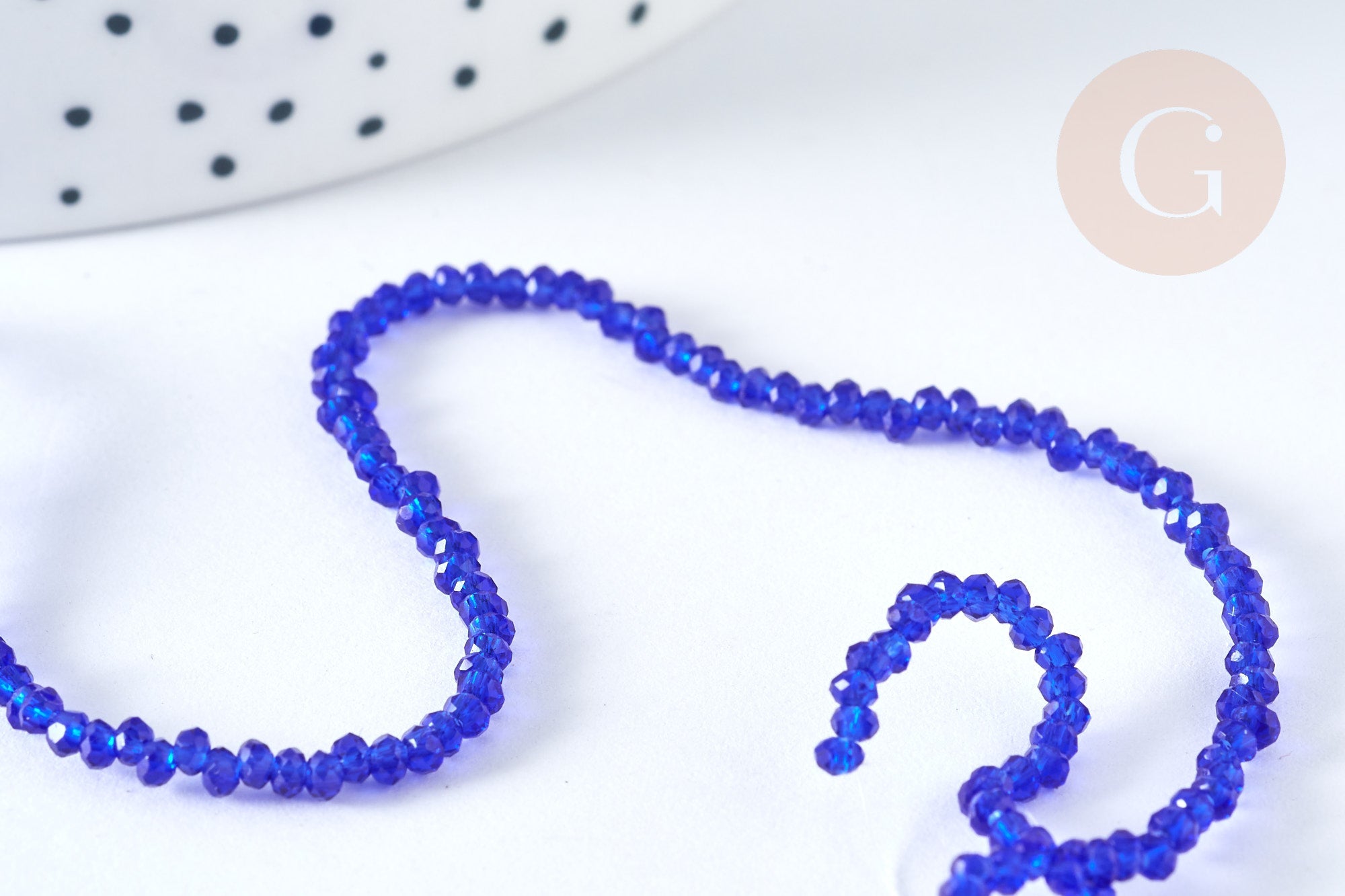 Perle rondelle verre facettée bleu roi 2~2,5mm, DIY, le fil de 37cm (G7339)