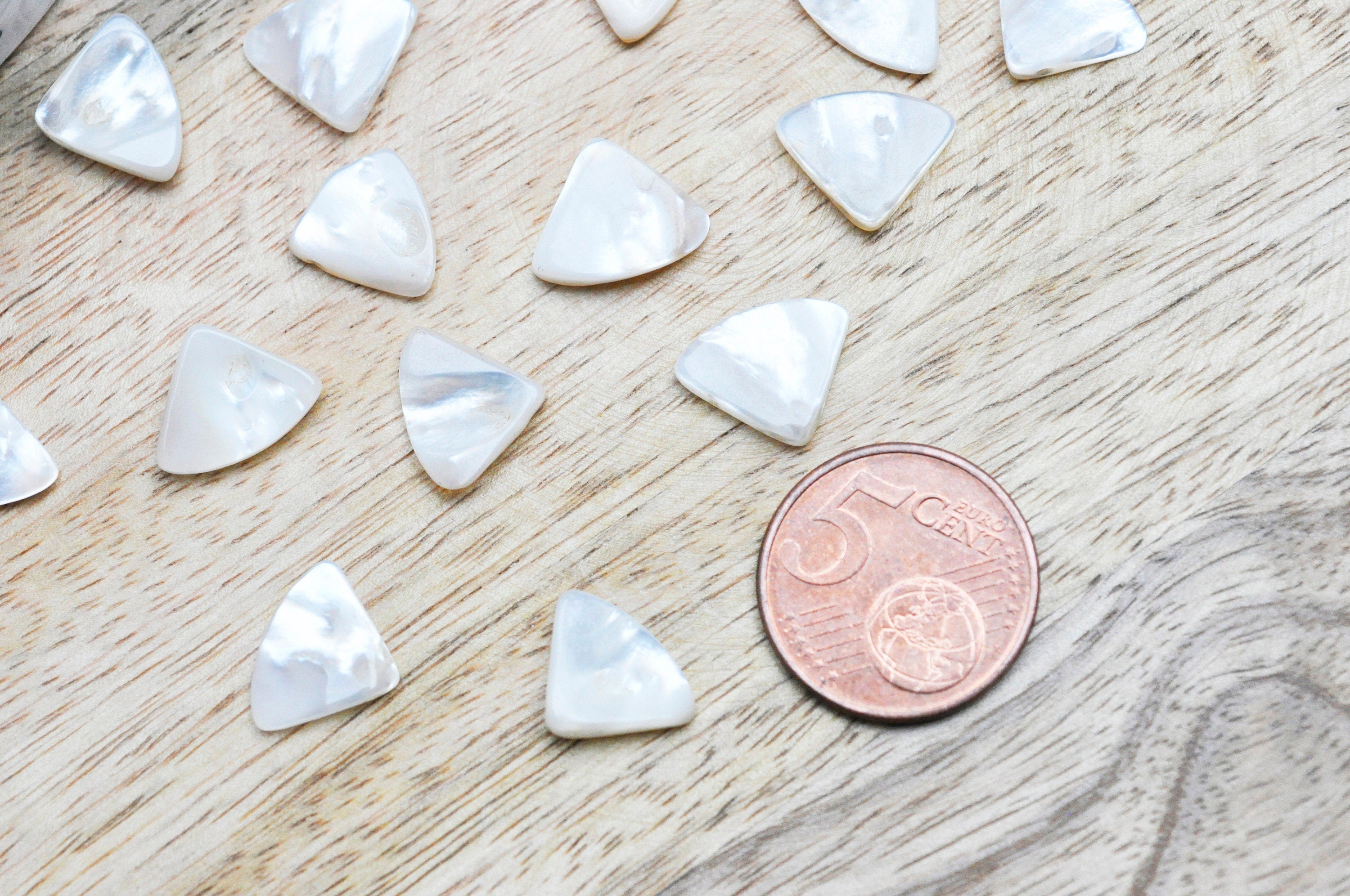 Natural white mother-of-pearl triangle pearl in gold, mother-of-pearl triangle pendant, white shell, mother-of-pearl jewelry 12mm, set of 10 Fall for these natural mother-of-pearl triangle beads. Sold in packs of 10 Length: 14mm Width: 11mm Thickness: 2-5mm Other pendants and beads...