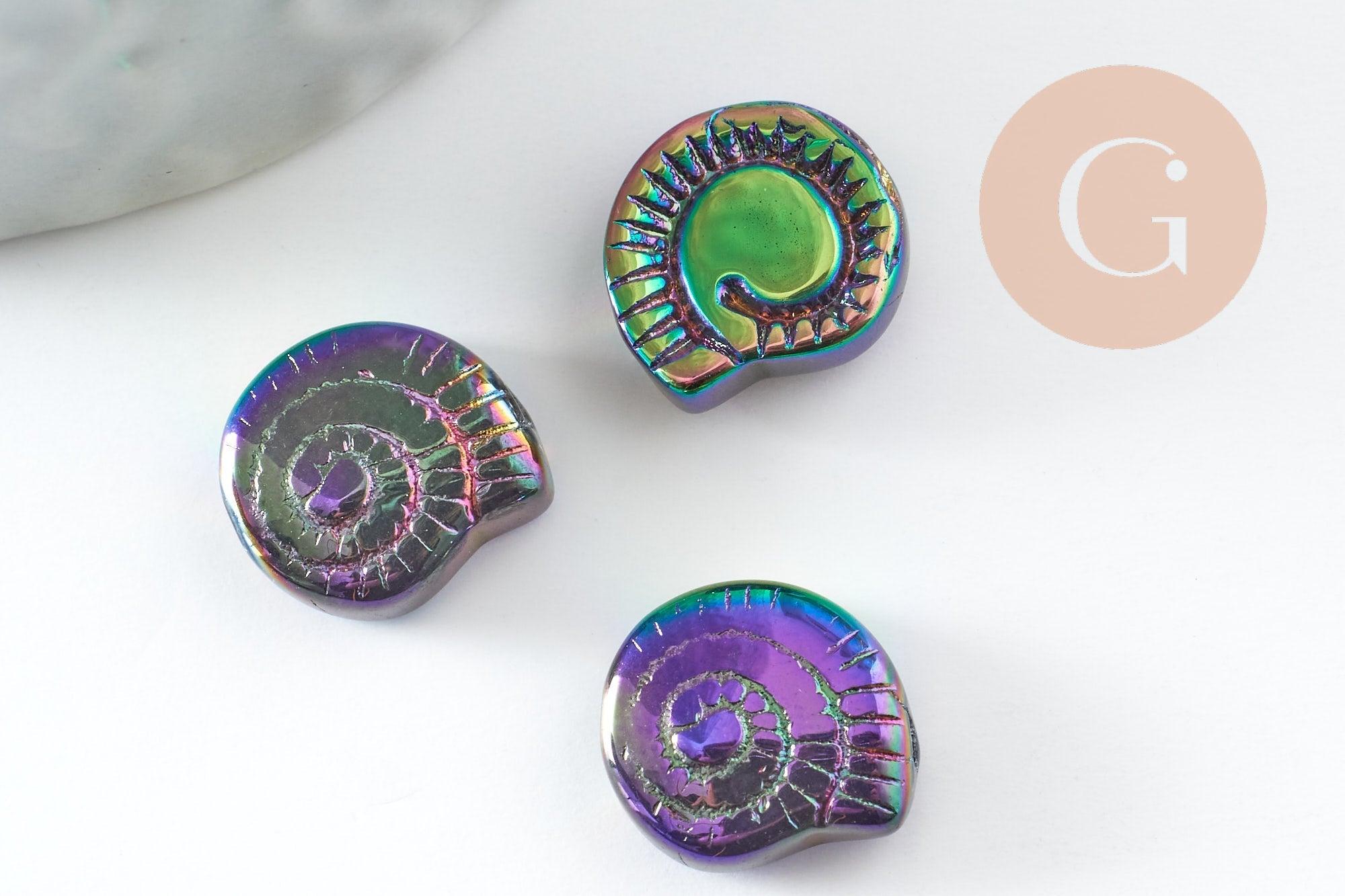 Enhance your jewelry creations with these 12mm iridescent blue shell glass beads. Ideal for designing necklaces, bracelets and earrings, these glass beads bring a unique and elegant touch to your accessories. In a set of 5, they are perfect for adding sparkle and originality to your DIY projects.