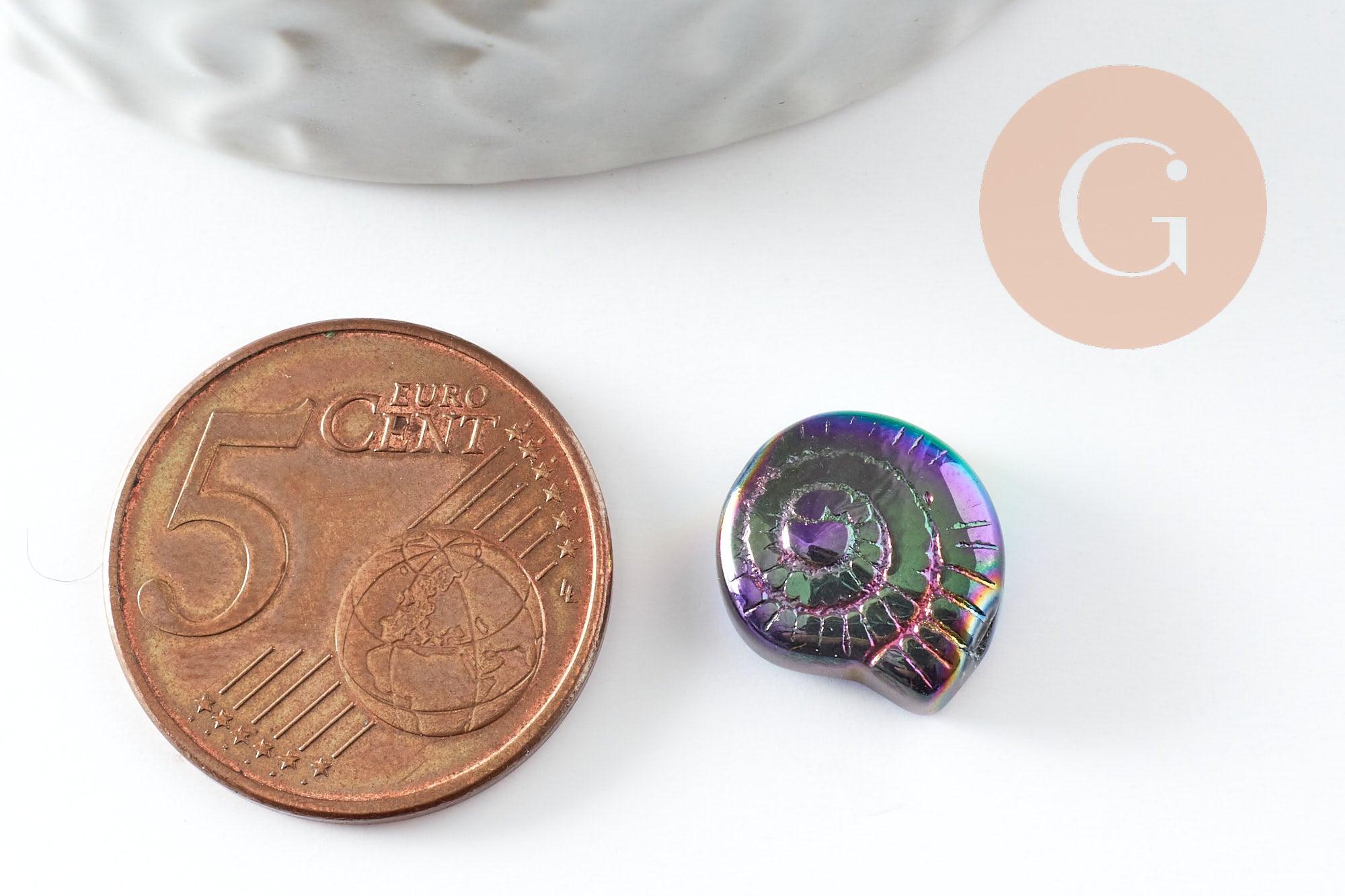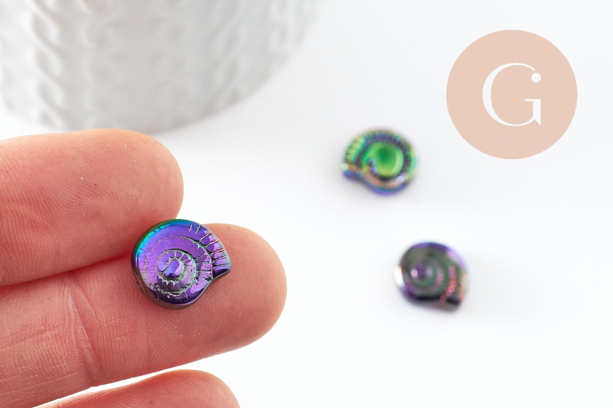 Perle verre coquillage bleu irisé 12mm, perles verre, x5 (G9634)