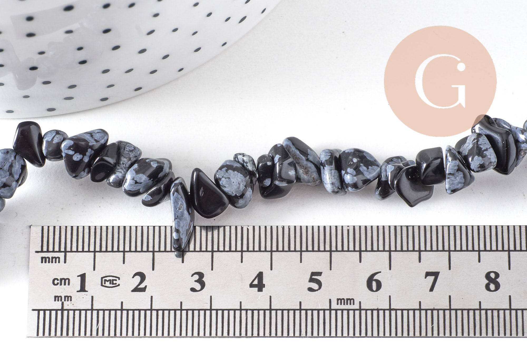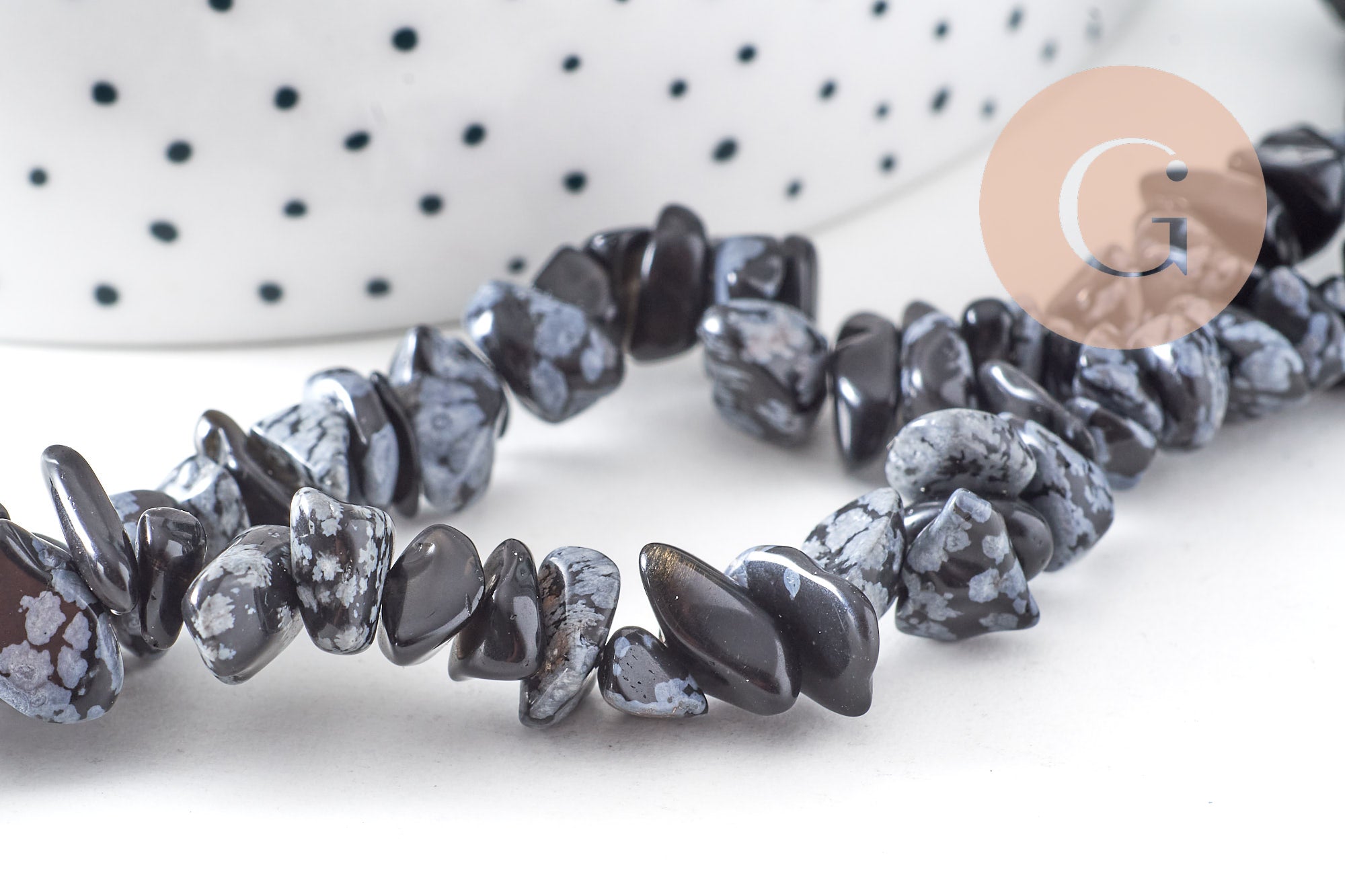 Perles chips en obsidienne neige naturelle 5-8mm, x1 fil de 90 cm(G1266)