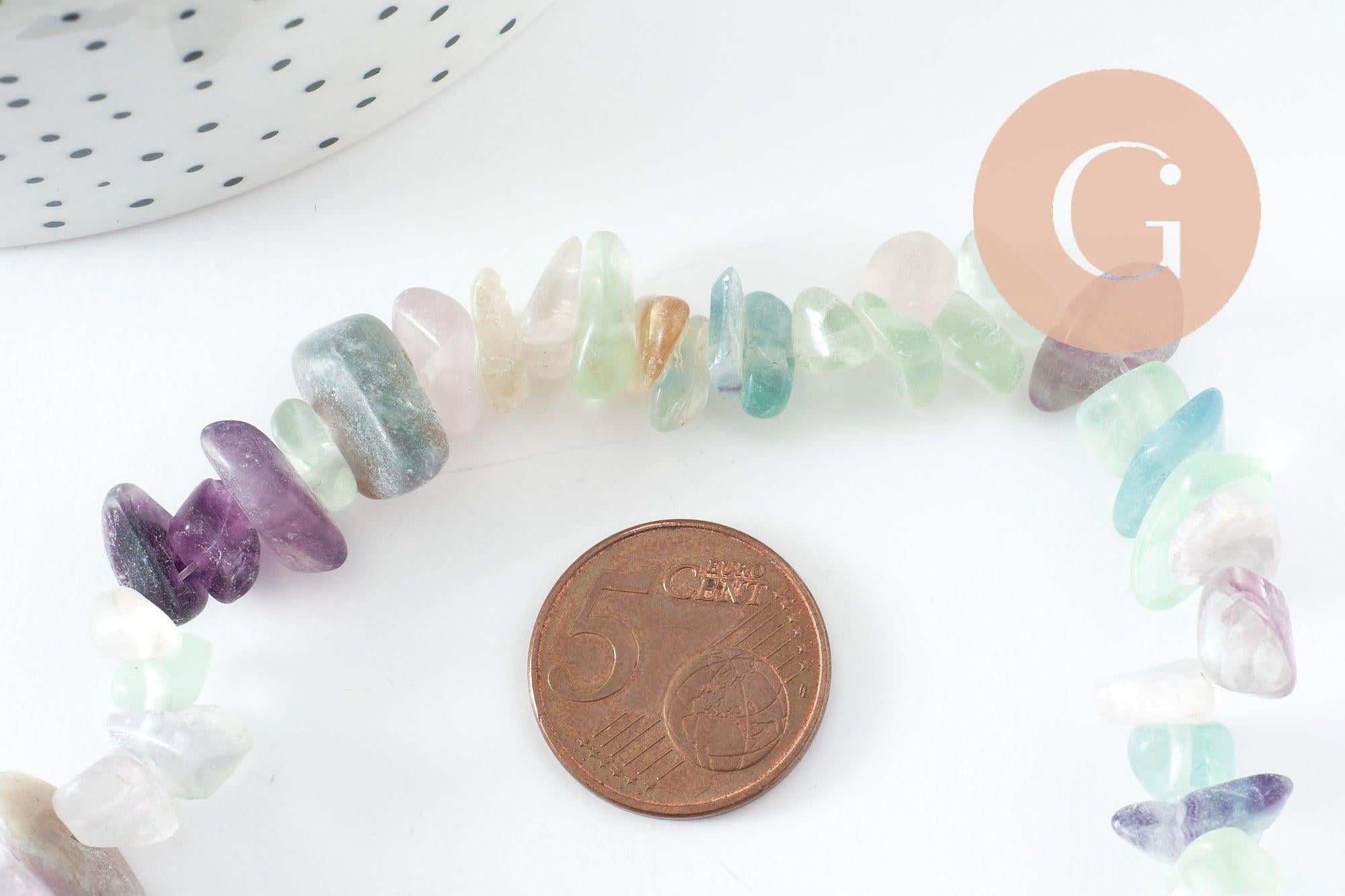 Natural fluorite chip beads are distinguished by their unique shades ranging from green to purple, sometimes translucent, creating magnificent plays of light. Highly prized in costume jewelry, they bring a bohemian and mystical mineral touch to all your creations. Each strand is composed of irregular beads, giving an organic and natural look to your handmade jewelry.