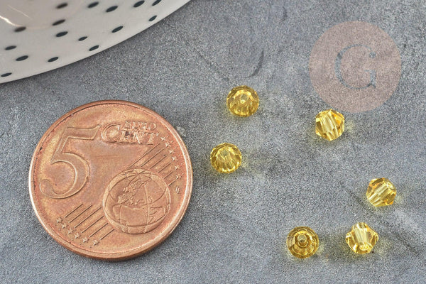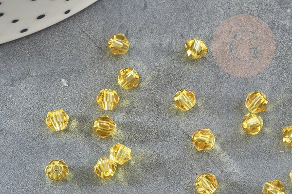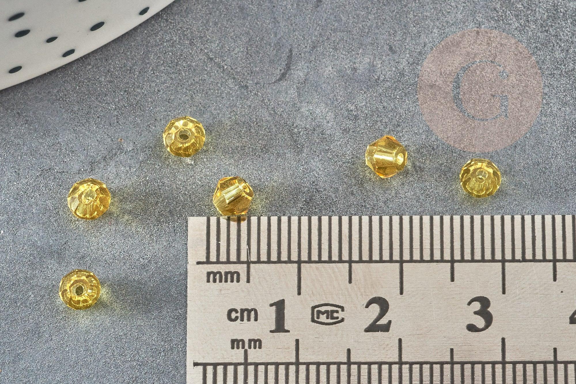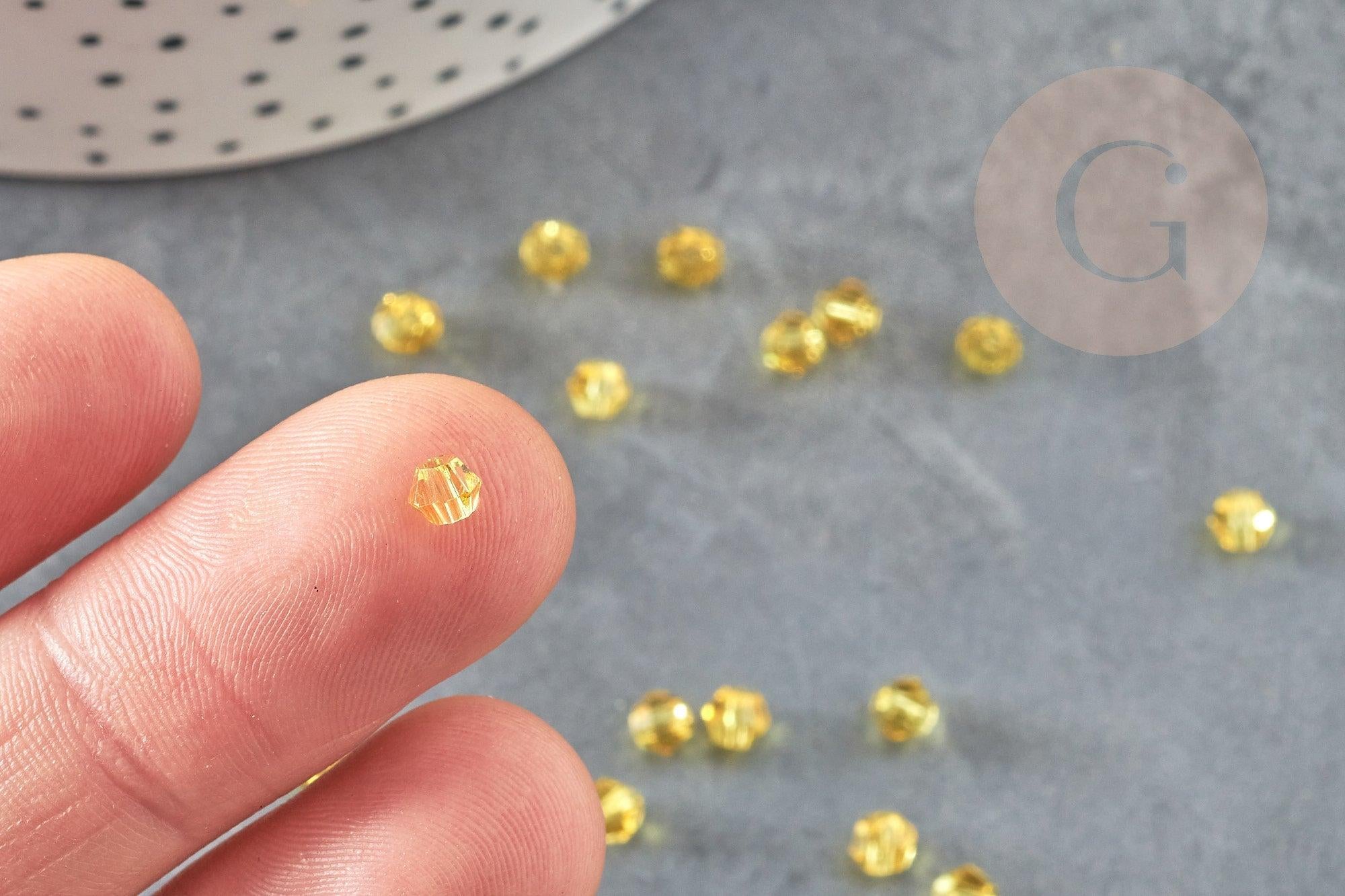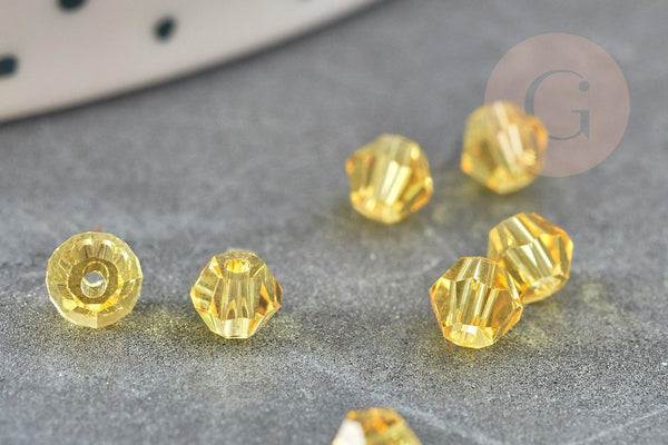 Yellow faceted crystal beads, creative supplies, Austrian crystal, bicone beads, spinning top crystal beads, yellow beads, lot of 20.4mm