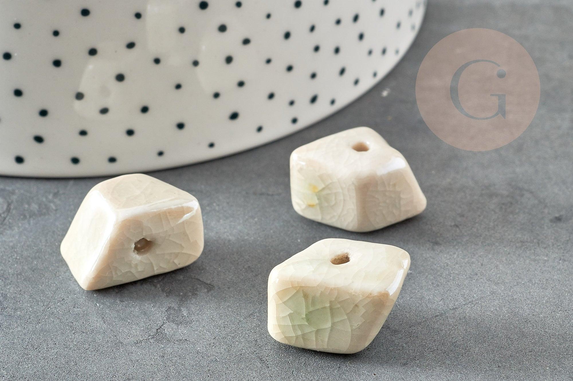 Perles pépite géométrique céramique blanche 20mm, perle porcelaine pour création bijoux DIY x10 G9151
