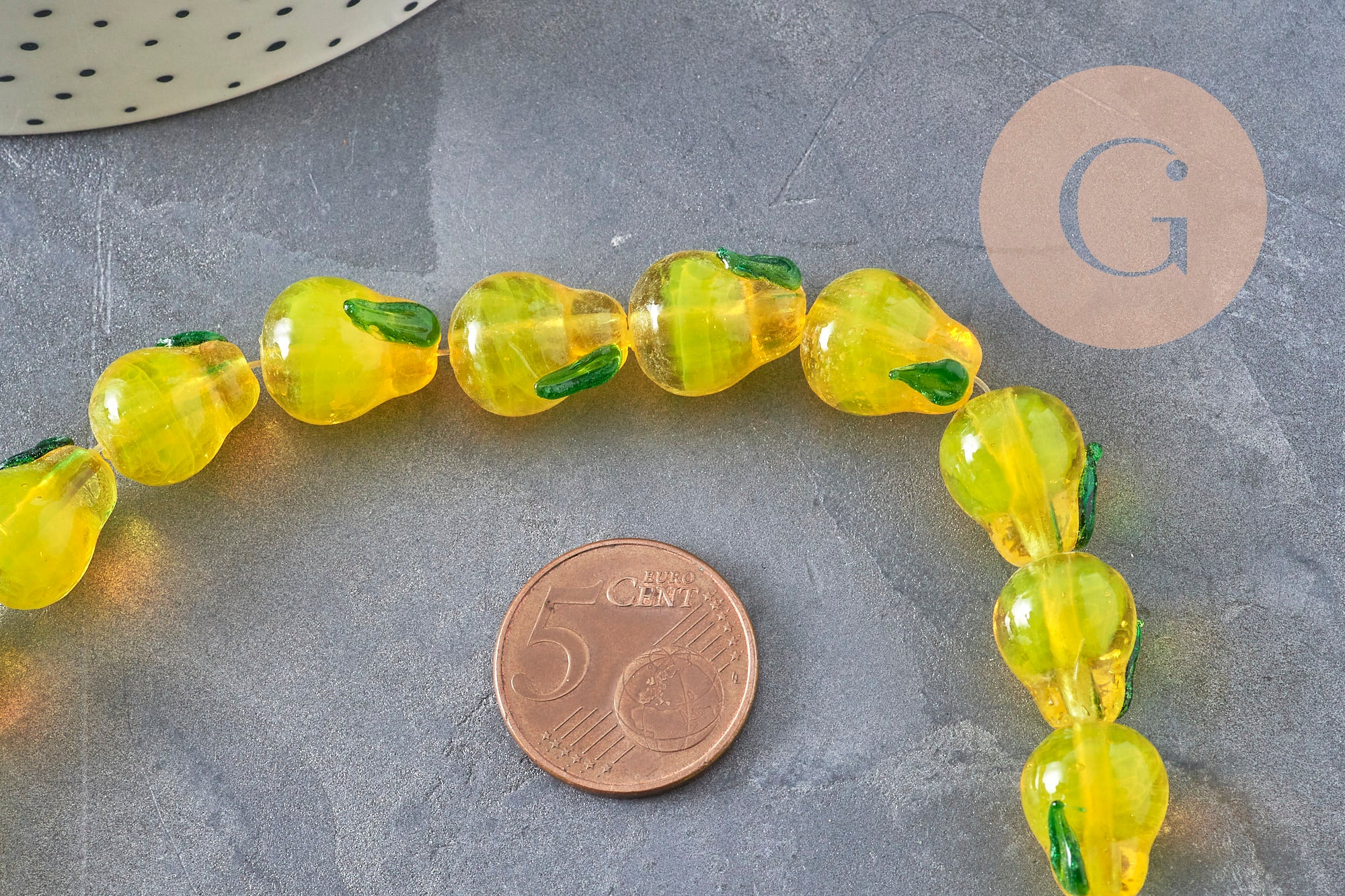Perles Poire fruit verre tchèque artisanal 14mm, x1 fil de 28cm (G11021)