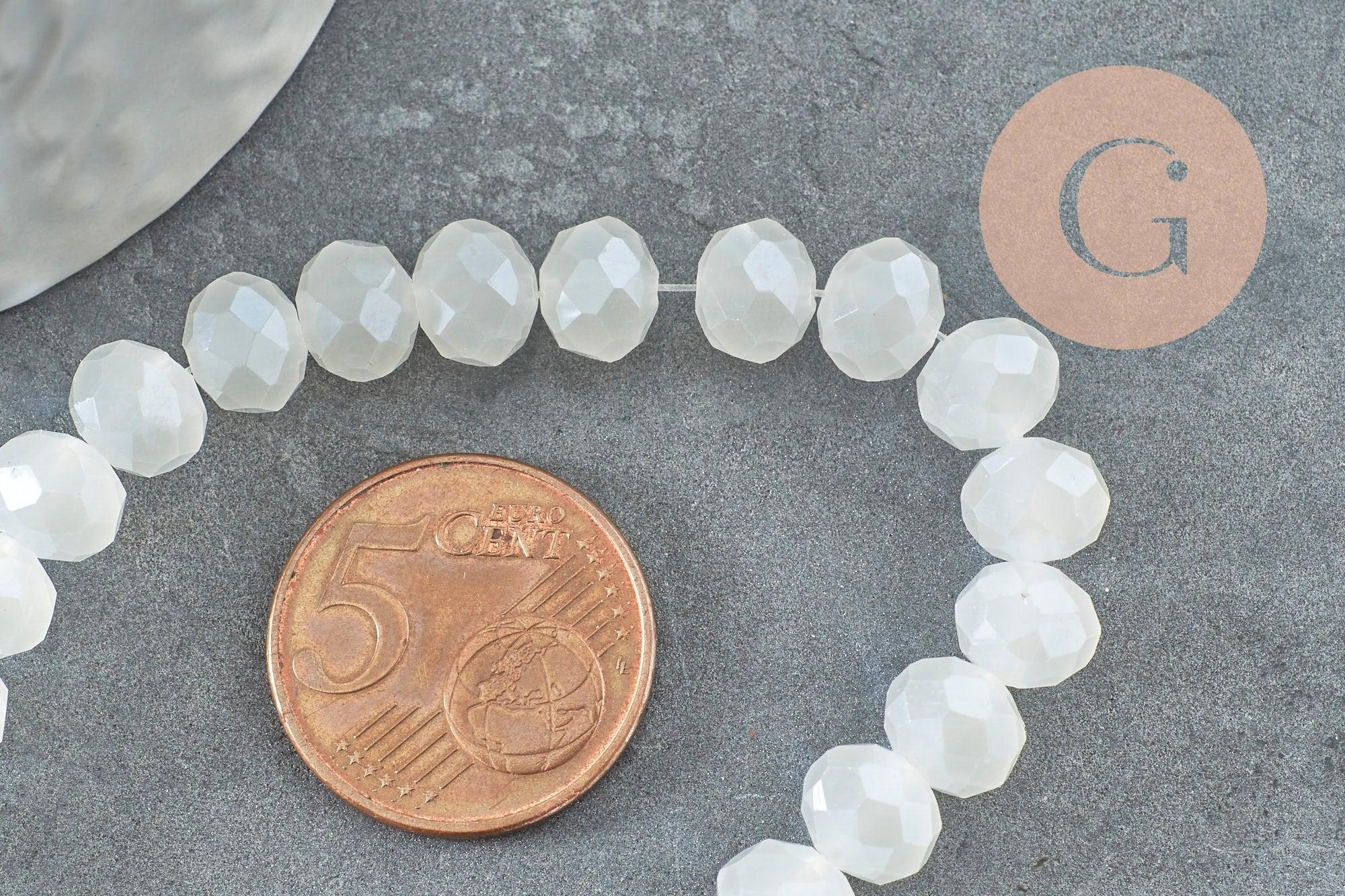 Iridescent white crystal abacus beads 8x6mm, x1 strand of 49cm (G3386)